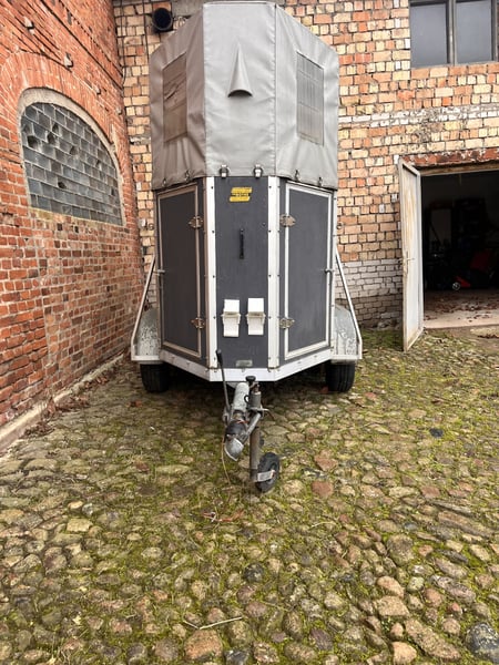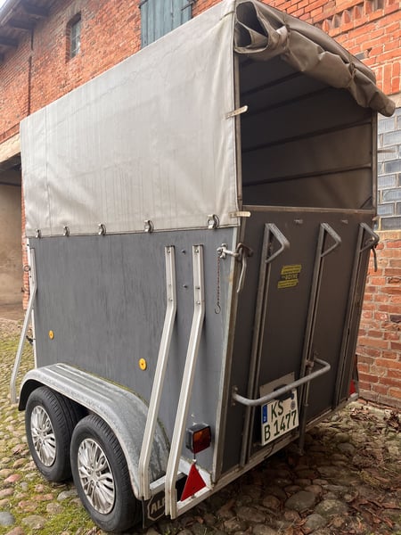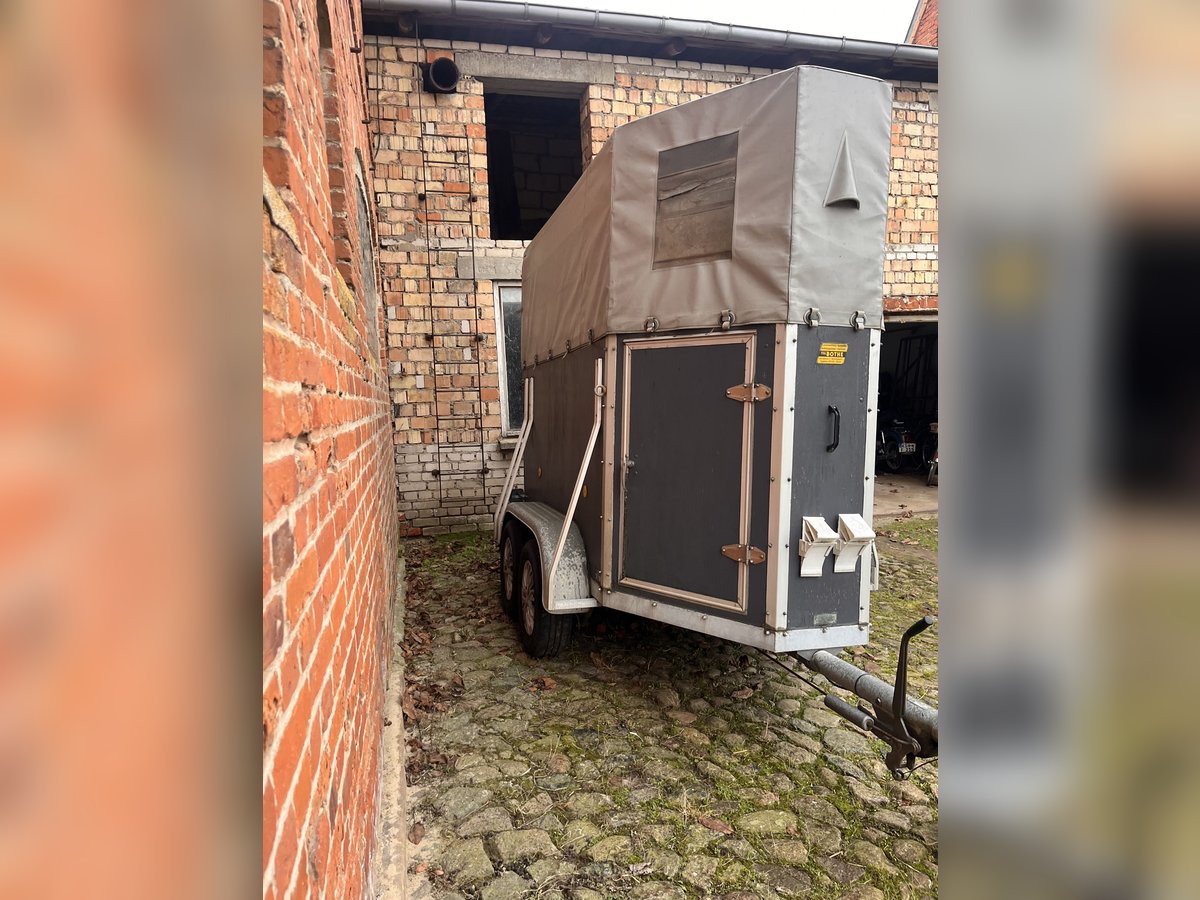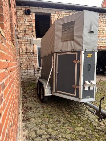 Pferdeanhänger für ein Pferd mit Fohlen Sattelkammer bewegliche Trennwand Baujahr 1988 bis Juni 2026 TÜV zulässiges Gesamtgewicht 1300 kg Gesamtmasse: Länge 4065 mm, Breite 1770 mm, Höhe 2600 mm Verladeklappe mit Trittleisten Manuelles Stützrad und Rangiergriff Gummiboden KFZ Papiere Vollständig leichte Beschädigungen an der Tür der Sattelkammer