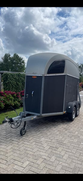 Je propose ma remorque pour chevaux Böckmann. Elle est équipée d’un plancher en aluminium, possède quatre pneus neufs, une homologation de 100 km/h et un contrôle technique récent. Vous pouvez charger vos chevaux directement et partir immédiatement. Si vous êtes intéressé, n'hésitez pas à me contacter au 0178 6526058. Vente privée et le prix est négociable.