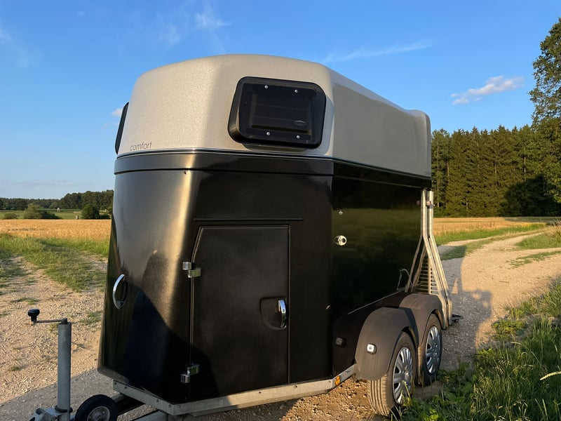 Verkaufe meinen Böckmann Pferdeanhänger Comfort aus dem Baujahr 2009. Der Hänger bietet folgende Ausstattung: • Geräumige Sattelkammer für deine Ausrüstung • Stabile Konstruktion von Böckmann • Doppelachse für sicheren Transport • Große Fenster für gute Belüftung • Praktische Seitentür Der TÜV ist frisch erneuert, sodass du direkt losfahren kannst. Der Hänger ist in einem guten Zustand und war bis 2025 immer trocken abgestellt. Bei Fragen melde dich gerne.