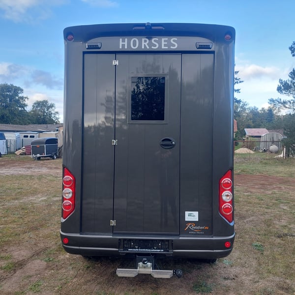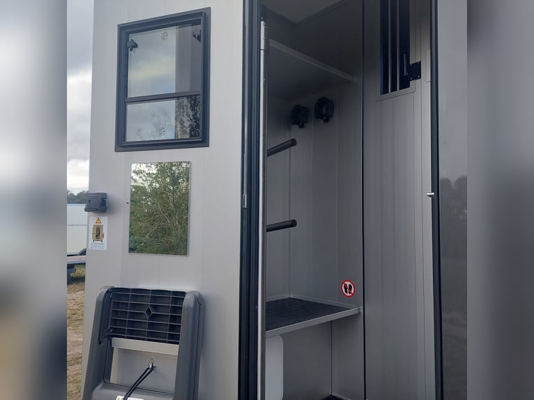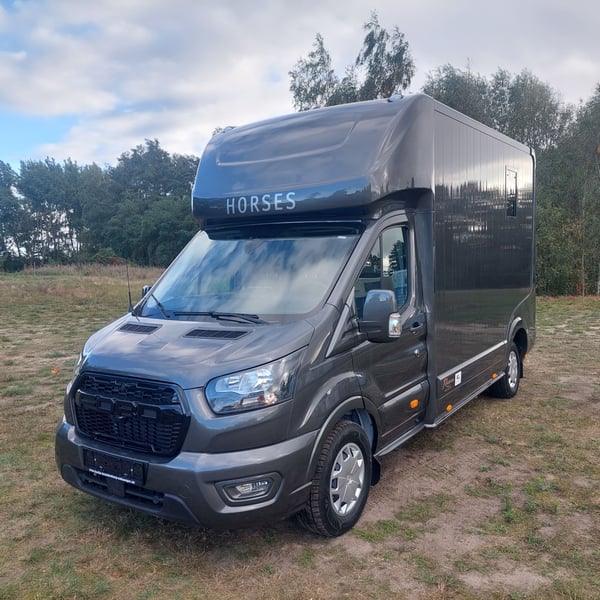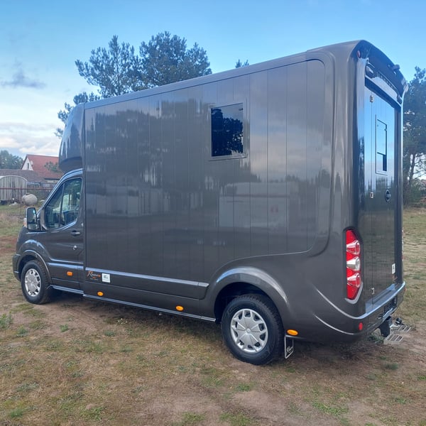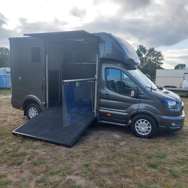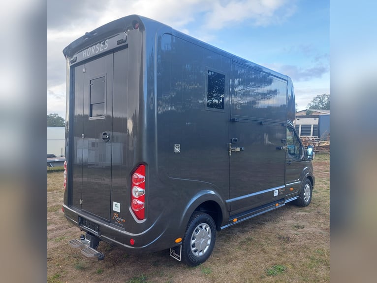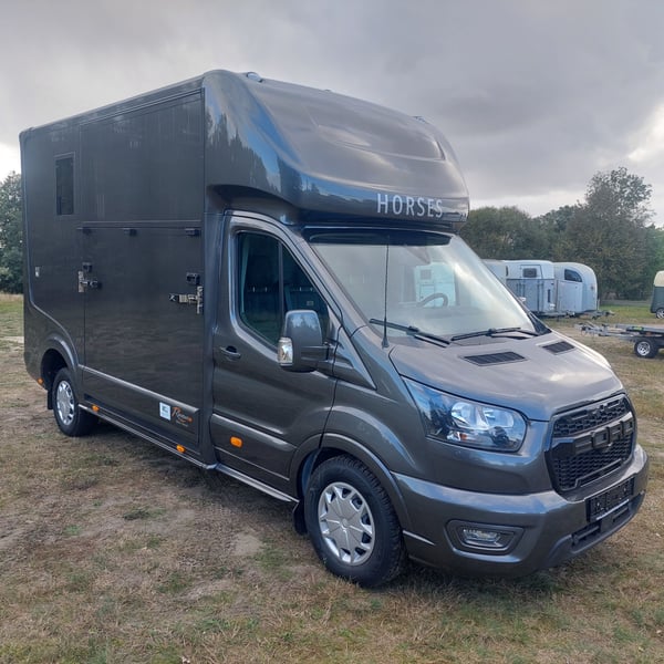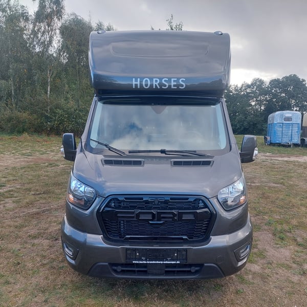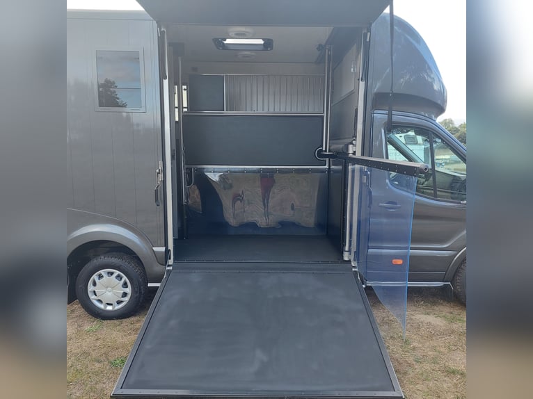 We sell a top-equipped Roelofsen Parados Sport in grey mead. with leather seats, stallion equipment and temperature monitoring in the horse compartment at call*** - Net price: 85000,-€ - Gross price 101150,-€ Basic equipment Parados Sport Ford Ford Transit MCA with TOP equipment 170 hp engine Ab. Total weight: 3500 kg Empty weight: approx. 2689 kg Trailer hitch Towing capacity: 2500 kg EcoBlue Euro 6.2 Diesel Engine Navigation with Intelligent Adaptive Cruise Control Leather seats ( 3 seats ) Security package 6 speed manual transmission Reinforced axle with air suspension Roelofsen Parados Sport Standard Equipment: - Anodized aluminum walls - Soft rubber coating - 2 vertical sliding windows, a skylight and 2 fans - Tie-in rings on the outside of the right outer wall Horse compartment: - Kick protection on the wall to the driver's cab up to 1.30 m - Aluminium partition wall ( henge equipment ) - Movable partition wall system - Kick cushion at the back - Stainless steel chest bar with panic lock - Storage compartment above the driver's cab with sliding doors - Stainless steel barrier bar with PVC curtain - LED lighting with day and night light (blue) - Stainless steel chains with panic lock - Horse compartment interior height 2.38 m - Luxurious tack room with shelving system !!!! It is a net price 19% VAT!!! Delivery by arrangement, financing and trade-in possible! Viewing/pick-up in 16845 Großderschau by arrangement at 033875/909588 possible at any time or if you have any further questions, please contact Mr. Hendrik Niehe 0171 69 31 016 Opening hours: Monday - Friday 8.00 a.m. - 5.00 p.m.