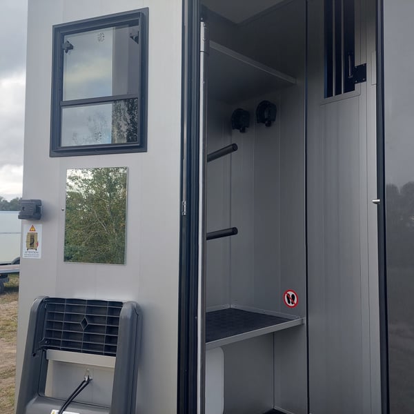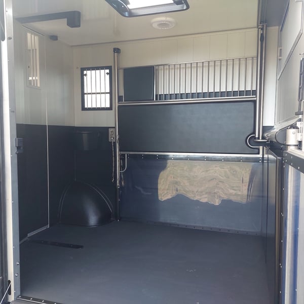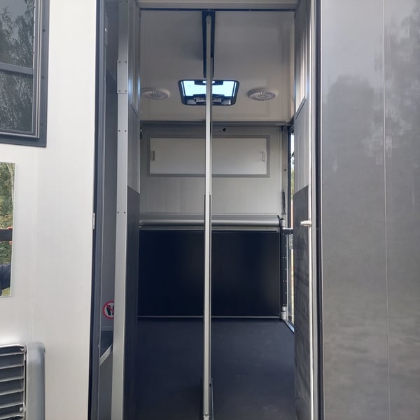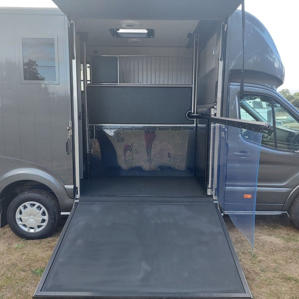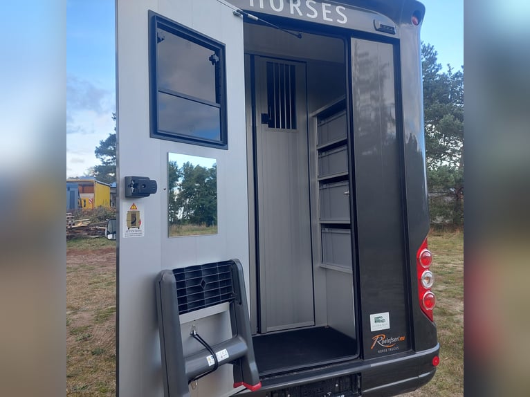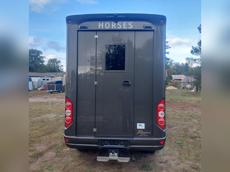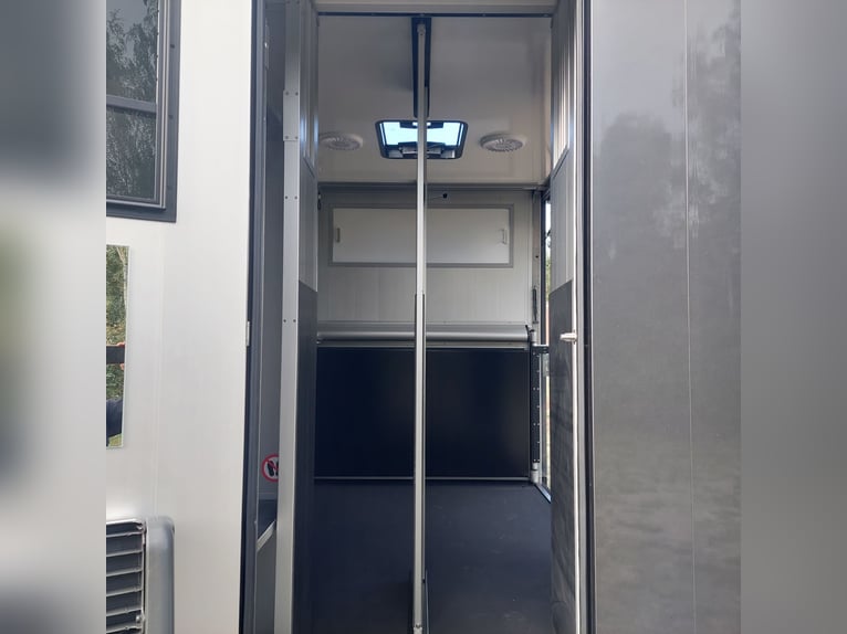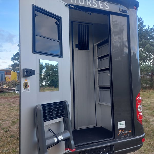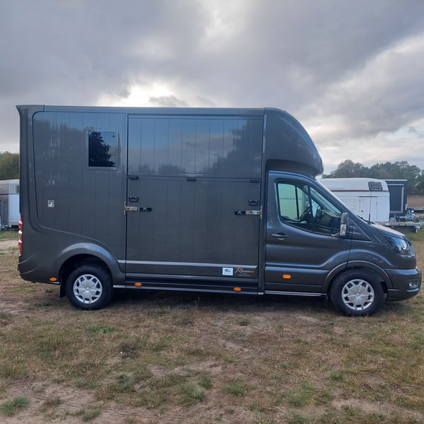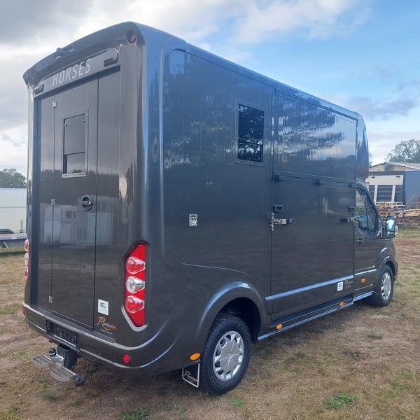 We sell a top-equipped Roelofsen Parados Sport in grey mead. with leather seats, stallion equipment and temperature monitoring in the horse compartment at call*** - Net price: 85000,-€ - Gross price 101150,-€ Basic equipment Parados Sport Ford Ford Transit MCA with TOP equipment 170 hp engine Ab. Total weight: 3500 kg Empty weight: approx. 2689 kg Trailer hitch Towing capacity: 2500 kg EcoBlue Euro 6.2 Diesel Engine Navigation with Intelligent Adaptive Cruise Control Leather seats ( 3 seats ) Security package 6 speed manual transmission Reinforced axle with air suspension Roelofsen Parados Sport Standard Equipment: - Anodized aluminum walls - Soft rubber coating - 2 vertical sliding windows, a skylight and 2 fans - Tie-in rings on the outside of the right outer wall Horse compartment: - Kick protection on the wall to the driver's cab up to 1.30 m - Aluminium partition wall ( henge equipment ) - Movable partition wall system - Kick cushion at the back - Stainless steel chest bar with panic lock - Storage compartment above the driver's cab with sliding doors - Stainless steel barrier bar with PVC curtain - LED lighting with day and night light (blue) - Stainless steel chains with panic lock - Horse compartment interior height 2.38 m - Luxurious tack room with shelving system !!!! It is a net price 19% VAT!!! Delivery by arrangement, financing and trade-in possible! Viewing/pick-up in 16845 Großderschau by arrangement at 033875/909588 possible at any time or if you have any further questions, please contact Mr. Hendrik Niehe 0171 69 31 016 Opening hours: Monday - Friday 8.00 a.m. - 5.00 p.m.