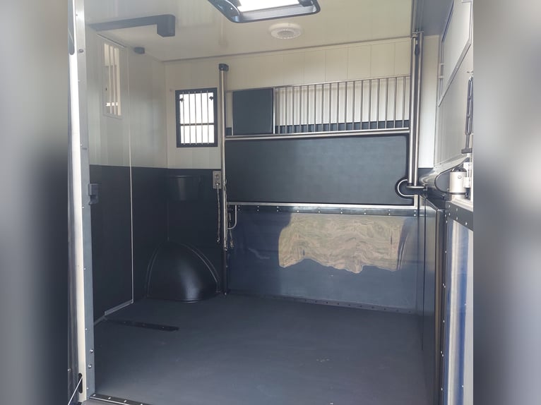 Nous vendons un Roelofsen Parados Sport haut de gamme en gris met. avec sièges en cuir, équipement d’étalon et surveillance de la température dans le compartiment à chevaux À l’appel*** - Prix net : 85000,-€ - Prix brut 101150,-€ Équipement de base Parados Sport Ford Ford Transit MCA avec équipement TOP Moteur de 170 ch Ab. Poids total : 3500 kg Poids à vide : env. 2689 kg Accroc Capacité de remorquage : 2500 kg Moteur diesel EcoBlue Euro 6.2 Navigation avec régulateur de vitesse adaptatif intelligent Sièges en cuir ( 3 places ) Pack de sécurité Boîte de vitesses manuelle à 6 rapports Essieu renforcé avec suspension pneumatique Roelofsen Parados Sport Équipement standard : - Parois en aluminium anodisé - Revêtement en caoutchouc souple - 2 fenêtres coulissantes verticales, un puits de lumière et 2 ventilateurs - Anneaux d’encordement à l’extérieur de la paroi extérieure droite Compartiment à chevaux : - Protection contre les coups de pied sur le mur jusqu’à la cabine du conducteur jusqu’à 1,30 m - Cloison de séparation en aluminium ( henge storage ) - Système de cloison mobile - Coussin de coup de pied à l’arrière - Barre de poitrine en acier inoxydable avec serrure anti-panique - Compartiment de rangement au-dessus de la cabine du conducteur avec portes coulissantes - Barre de barrière en acier inoxydable avec rideau en PVC - Éclairage LED avec lumière jour et nuit (bleu) - Chaînes en acier inoxydable avec serrure anti-panique - Hauteur intérieure du compartiment à chevaux 2,38 m - Sellerie luxueuse avec système d’étagères !!!! Il s’agit d’un prix net 19% de TVA !! Livraison sur rendez-vous, financement et reprise possibles ! Visite/prise en charge au 16845 Großderschau sur rendez-vous à 033875/909588 possible à tout moment ou si vous avez d’autres questions, veuillez contacter M. Hendrik Niehe 0171 69 31 016 Horaires d’ouverture : Du lundi au vendredi de 8h00 à 17h00