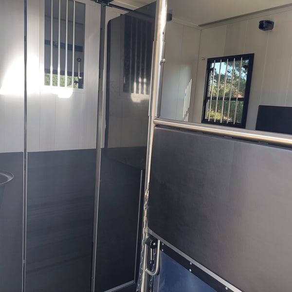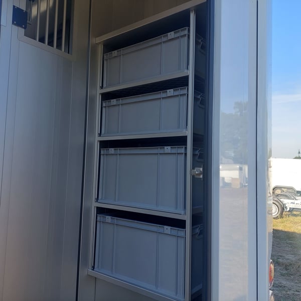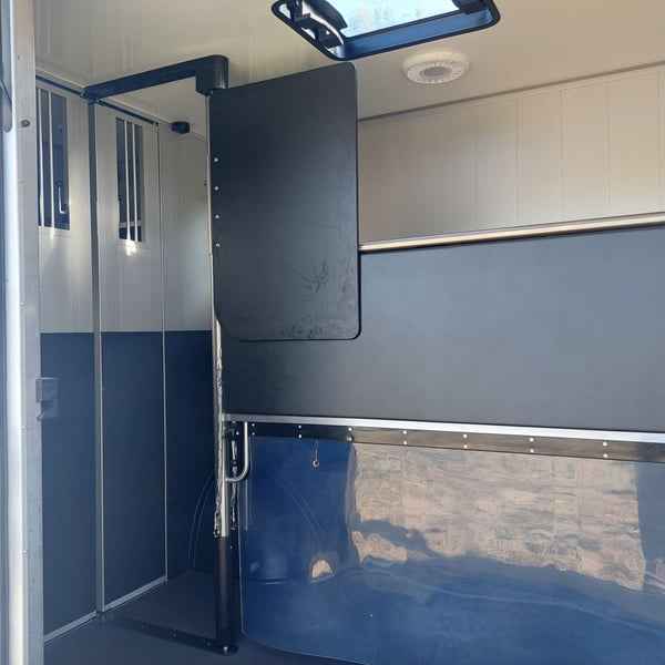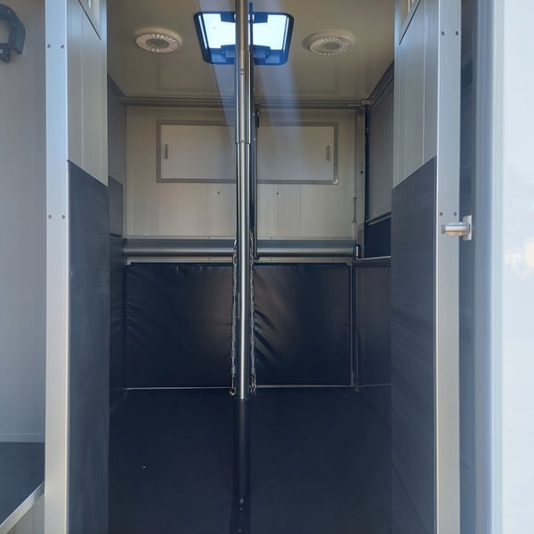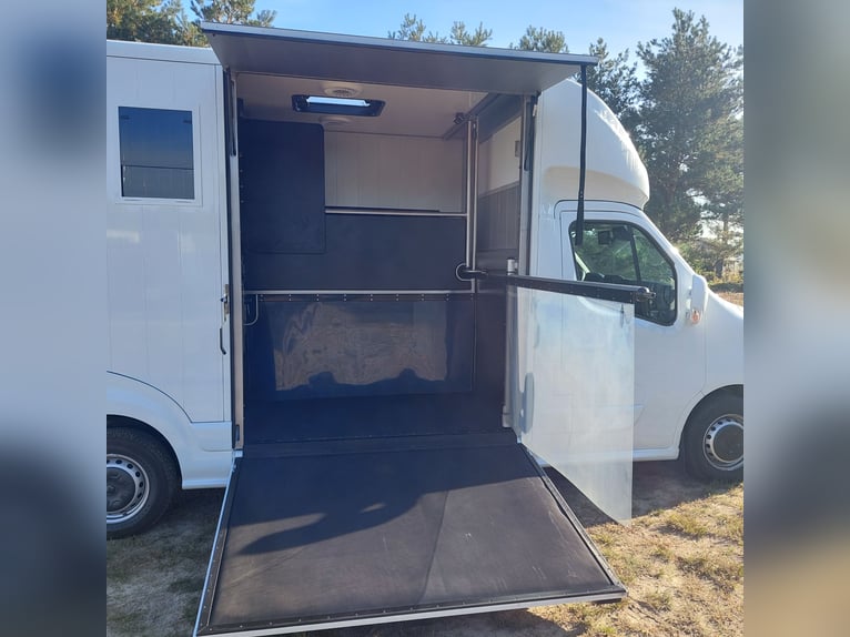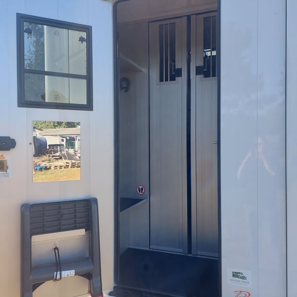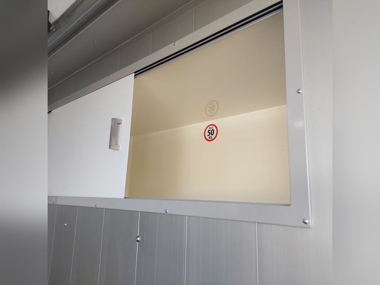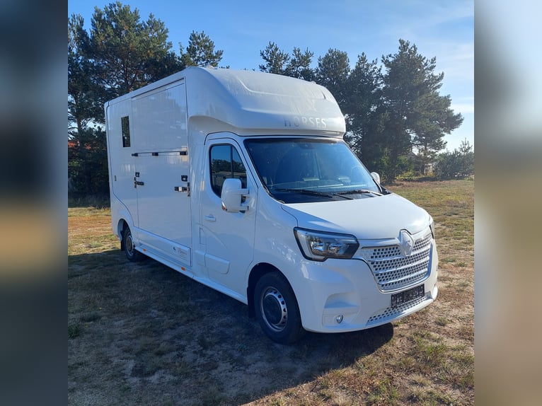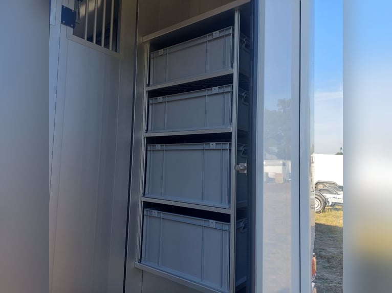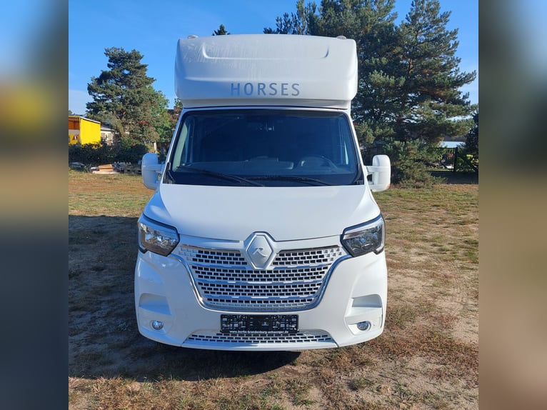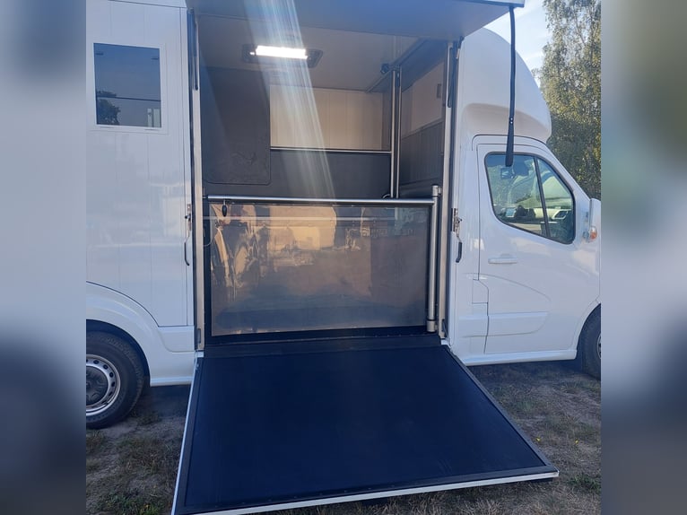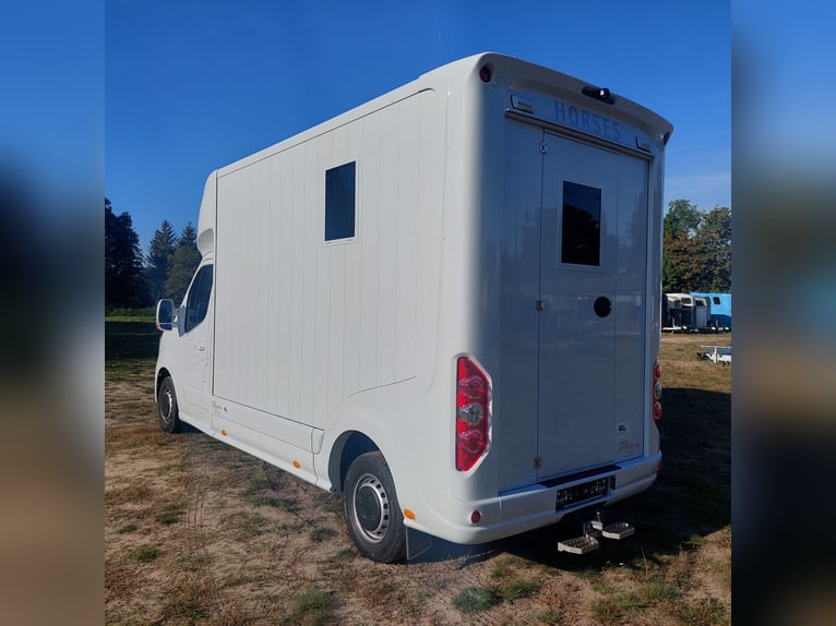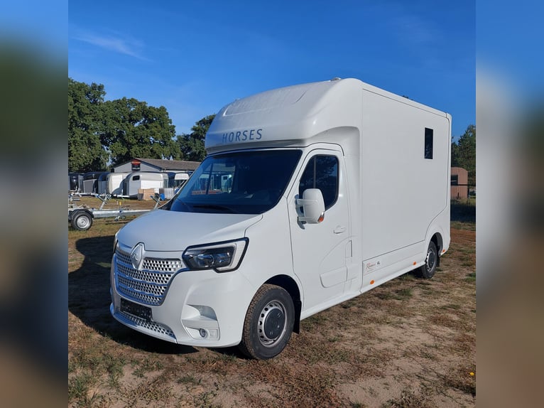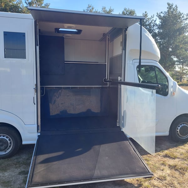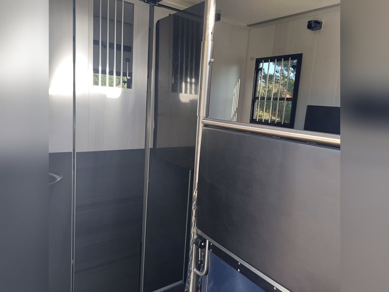We are selling a new Roelofsen horse trailer... NEW VEHICLE!! Immediately available at a special price! *** NET PRICE *** plus 19% VAT. - Foldable head partition - Fabric seats - Permissible total weight: 3500 kg - Diesel - Air conditioning - Cruise control - Tow hitch - Towing capacity: 2500 kg - 3-seater - Navigation system - Video surveillance The Parados is standardly equipped with: Walls made of anodized aluminum Honeycomb core plastic construction with soft rubber flooring Large side ramp (right side) with soft rubber floor, lifting aid, and a flap Entrance door in the rear structure (lockable) with vertical sliding window 2 vertical sliding windows, one roof hatch, and 2 fans Tie ring on the right outer wall Temperature monitoring in the horse compartment Horse compartment: Impact protection on the wall to the driver's cab up to 1.30 meters Aluminum partition wall Sliding system for the partition wall Kick cushion under the rail system Storage compartment above the driver's cab with sliding doors Stainless steel locking bar with PVC cover LED lighting with day and night light Stainless steel chains with panic closure Horse compartment interior height 2.38 meters Luxurious saddle room: 4 bridle hooks 2 saddle holders Coat hook Shelf system Step Mirror Delivery by arrangement, trade-in and financing gladly possible Viewing/pick-up in 16845 Großderschau by appointment at 033875-909588 anytime possible! Opening hours: Monday - Friday 8:00 AM - 5:00 PM