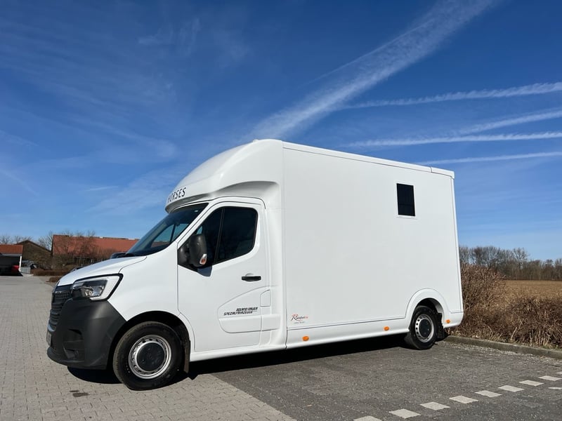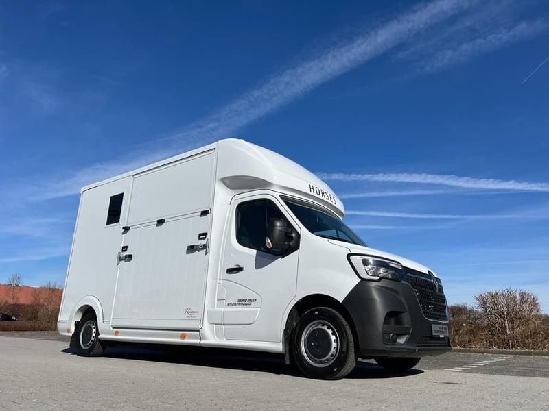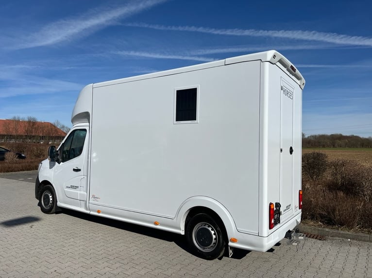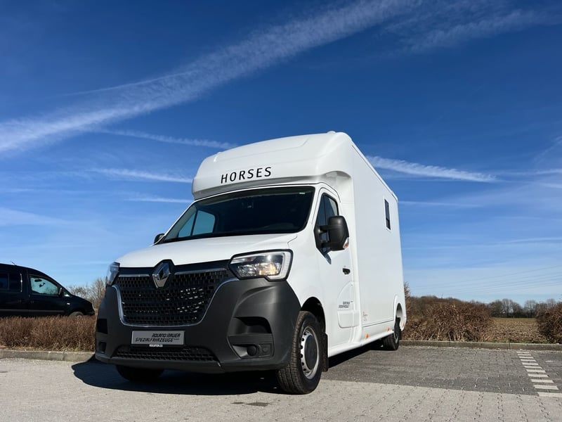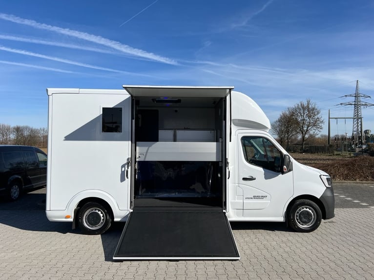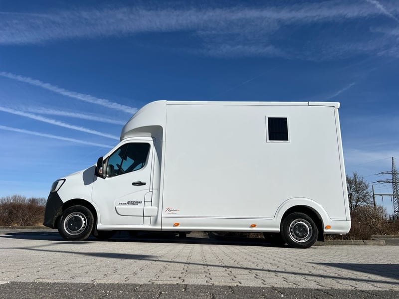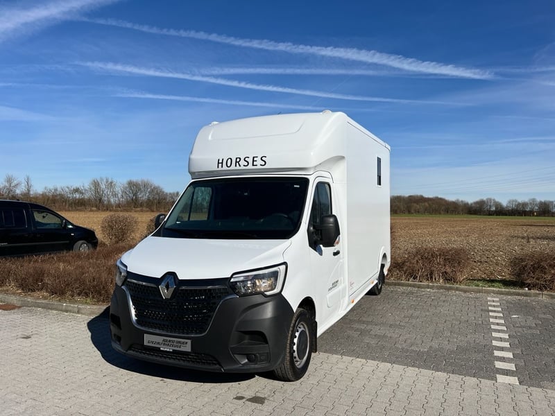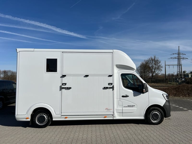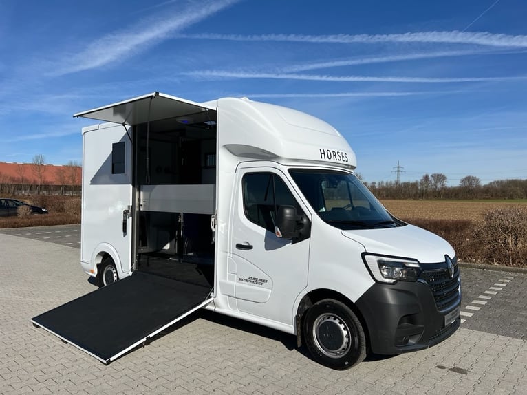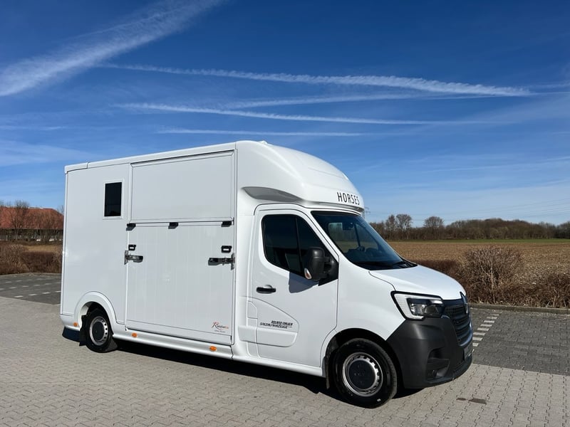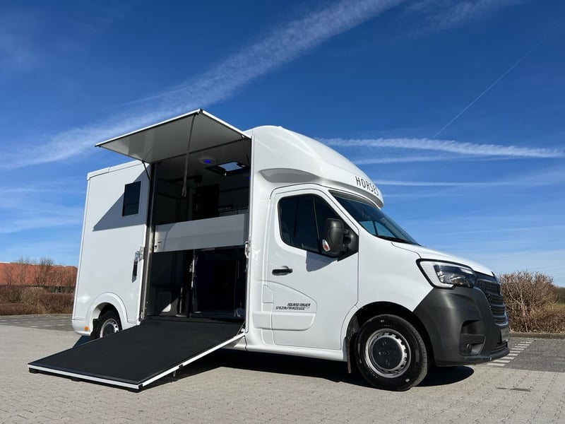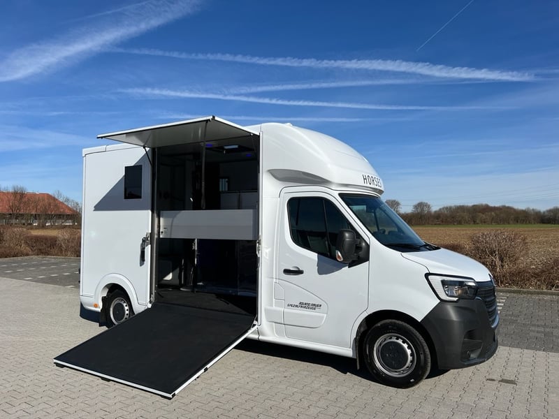 We are selling a new ROELOFSEN YORSE 2 horsebox NEW VEHICLE!!! *** NET TOP PRICE *** plus 19% VAT. 71.394 € (gross) Diesel engine 107 kW (145 HP) Manual gearbox Gross vehicle weight 3,500 kg Engine capacity 2,299 cm³ Number of seats 3 Emission class Euro6 d-TEMP environmental badge4 (green) Climate control, Air conditioning, Parking aid, Camera, ColorWhite Renault Master, 3-seater, diesel, Euro6d-Temp, manual gearbox, navigation system, unladen weight from 2,450 kg (varies depending on equipment - (extras can affect the payload) ROELOFSEN body made from GRP sandwich High-quality workmanship and durable materials Aluminum partition wall Soft rubber floor Side ramp covered with rubber mat and opening flap at the top Large roof window and 2x electric fans (can be switched separately from the driver's cab and in the tack room) 1x side window each Rear access door to the tack room Spacious tack room with two saddle holders and bridle holder Special Roelofsen shelving system with boxes Delivery by arrangement, trade-in and financing possible Inspection/collection in 16845 Großderschau possible at any time by arrangement on 033875-909588! Opening hours: Monday - Friday 8.00 - 17.00 o'clock