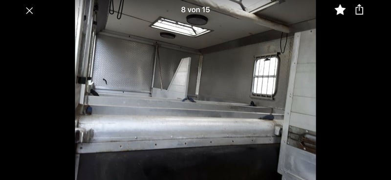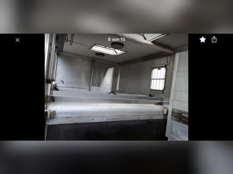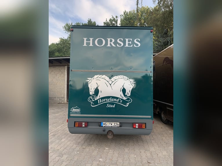 MAN L2000 con carrozzeria Steinsberger, pneumatici nuovi 2 rampe laterali con griglie per rampe, scorrevoli completamente rovinate (forma mega) Scomparto cavallo completamente circonferenziale su piastra striata in alluminio antiurto, imbottito con copertura in gomma Pareti divisorie in alluminio Mangiatoie interamente in alluminio al centro con corridoio di alimentazione Selleria. (Un armadio in acciaio può essere tirato nella stanza della selleria tramite verricello e rampa) Portaselle, portafiletti, ripiani integrati per coperte, ghette, ecc. AHK 3,5 tonnellate Cabina di guida molto ben tenuta