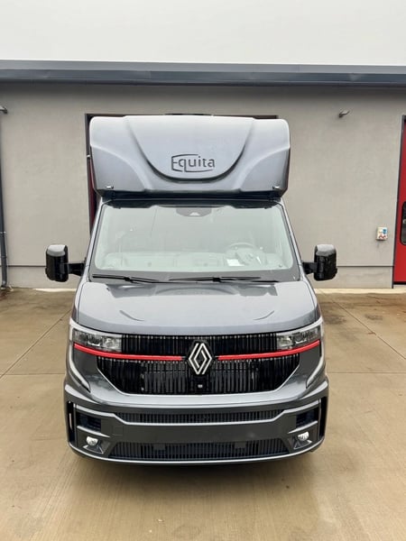 Renault Master Equita 3-Sitzer - neues Renault Modell mit Automatikgetriebe Chassis • Renault Master • 2.3L CDI Motor mit 170 PS • neueste Euro 6d-TEMP Abgasnorm • Zulässiges Gesamtgewicht: 3.500 kg - optional auflastbar auf 4.000 kg) • Serienmäßig mit 2.500 kg Anhängelast • Multimedia-System mit Bluetooth-Verbindung für Telefon und Audio • AppleCar-Play Anbindung • Navigationssystem • Klimaanlage im Fahrerhaus • Tempomat • LCD-Monitor zur Überwachung des Pferderaums und Rückfahrkamera Grundausstattung Renault Master Equita • Equita Aufbau – robust, leicht & isoliert • Transport für 2 Pferde rückwärts stehend • Seitenrampe mit niedrigem Einstieg, ergonomisch & pferdefreundlich • Gummierter, rutschfester Boden, wasserfest & leicht zu reinigen • Gepolsterte, verstellbare Edelstahl-Trennwand • Sattelkammer mit höhenverstellbarem Sattelhalter & Trensenhaken • Zwei Durchgänge zur Sattelkammer für optimale Erreichbarkeit beider Pferde • Dachlüfter und Dachfenster für optimale Frischluftzufuhr und Luftzirkulation • Stauraum über dem Fahrerhaus • LED-Beleuchtung Besichtigungen bitte nur nach vorherhiger Terminvereinbarung! Irrtümer und Zwischenverkauf vorbehalten.