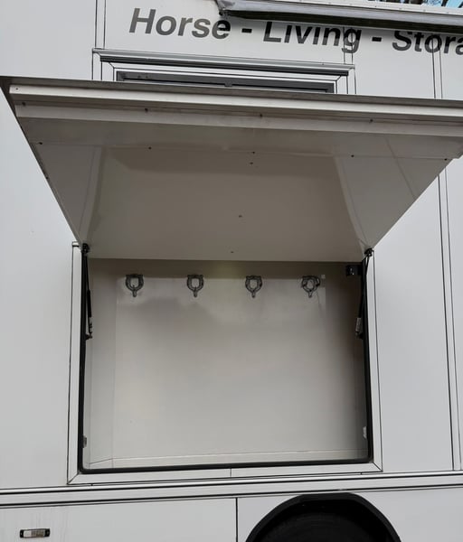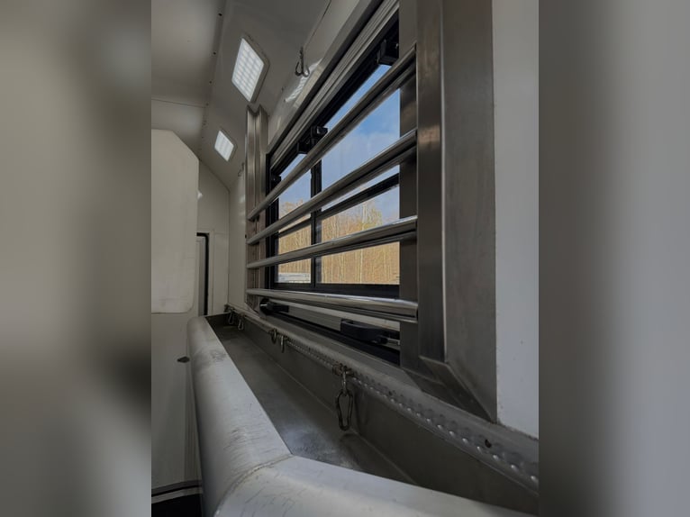Remorque de la marque JK, année de fabrication 2020 - Espace pour 4 grands chevaux - Capot latéral spacieux - Fenêtres latérales ouvrantes - Fenêtres de toit ouvrables - Ventilateur - Éclairage Partie sociale : - Climatisation - Webasto - Douche avec pompe à eau puissante - Grand réservoir d’eau - Frigo - Micro-ondes - TV + antenne La remorque est en très bon état, bien entretenue. Utilisée quelques fois par an. Possibilité de vendre en ensemble, avec le véhicule visible sur la vidéo. Mercedes Benz Atego 1224, année 2014, kilométrage 497 000 km - Boîte automatique - Climatisation - Webasto - 2 places de couchage - Plateforme entièrement équipée - Panneau de toit très spacieux de 7,6 m
