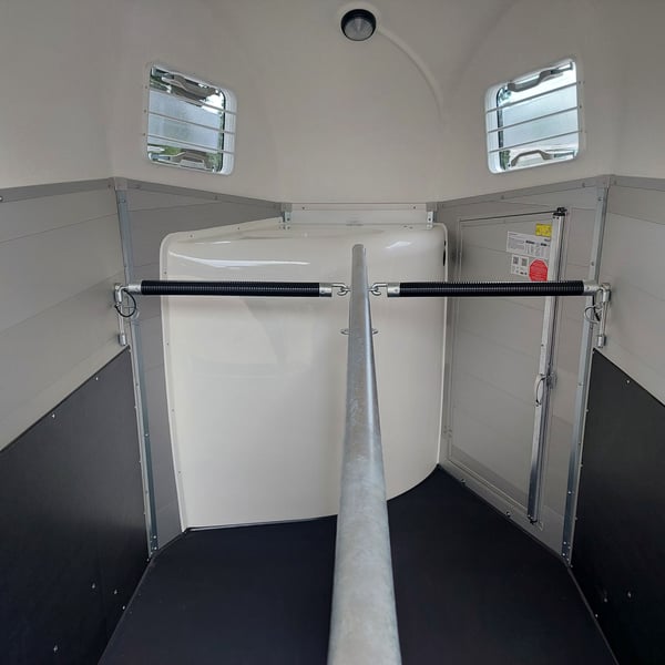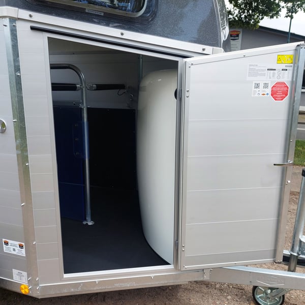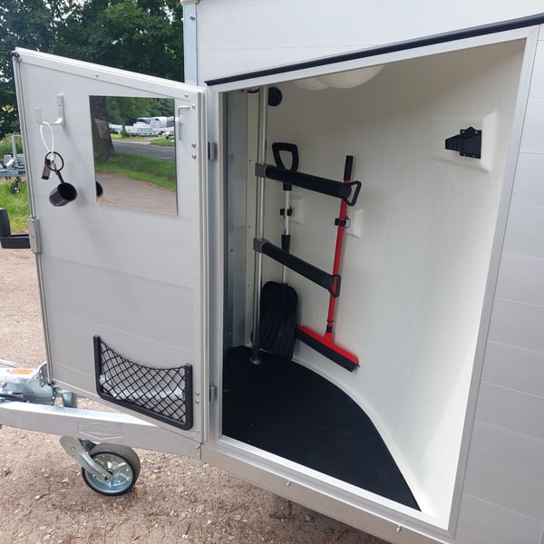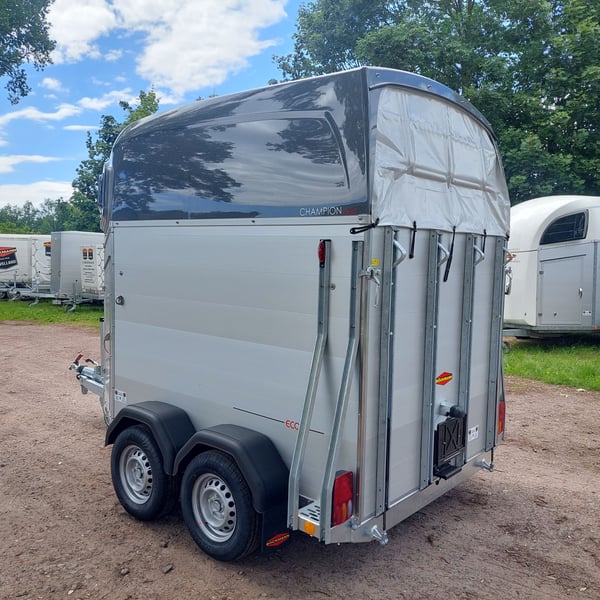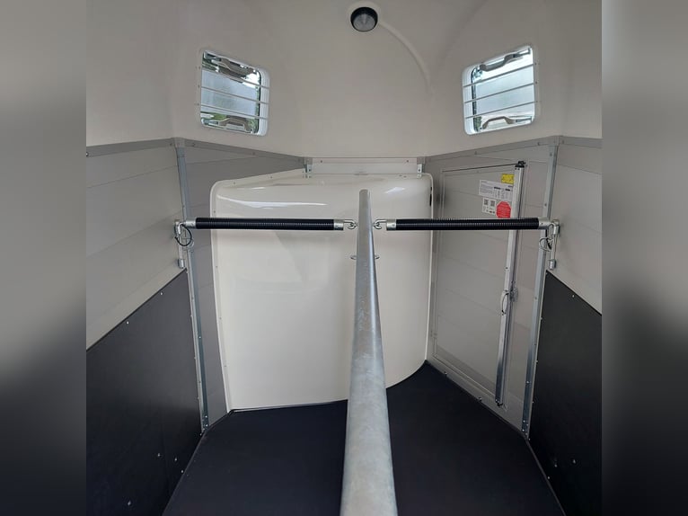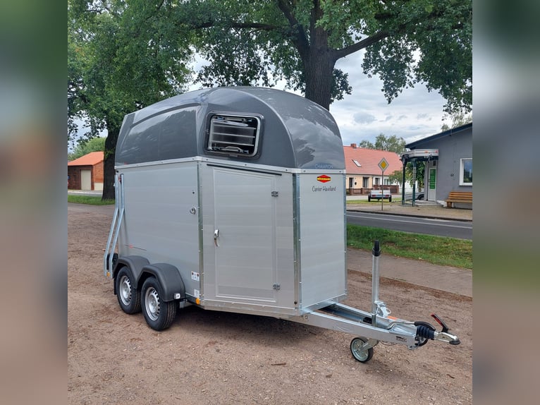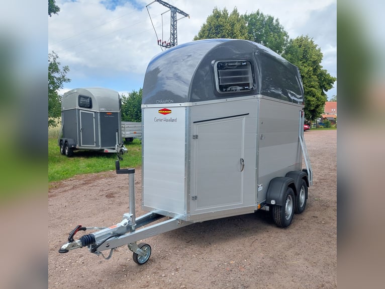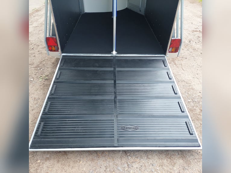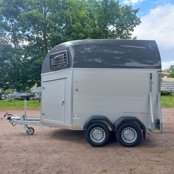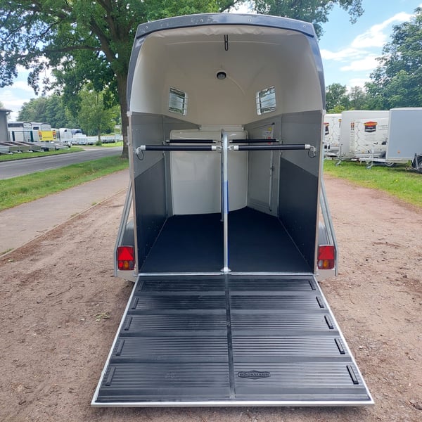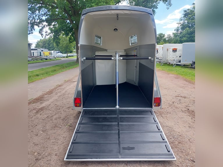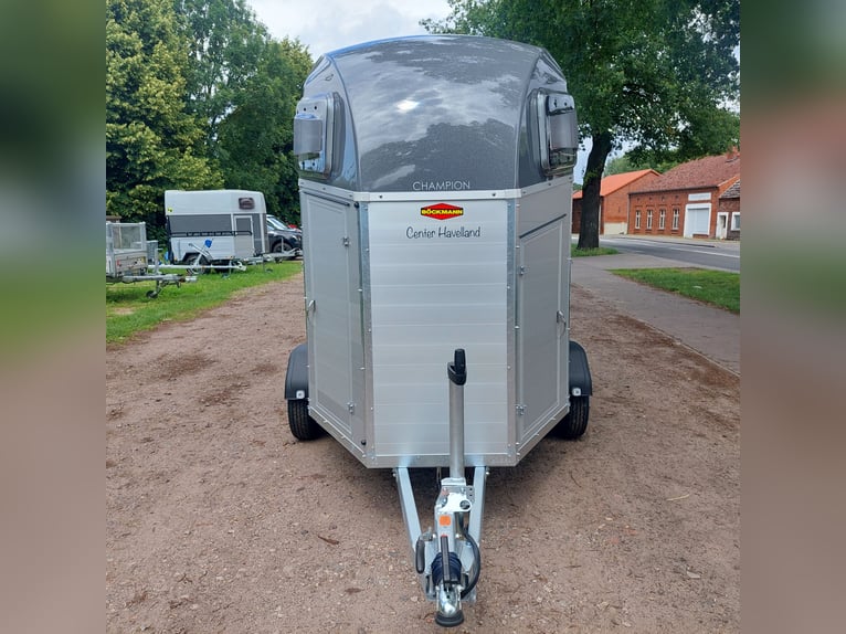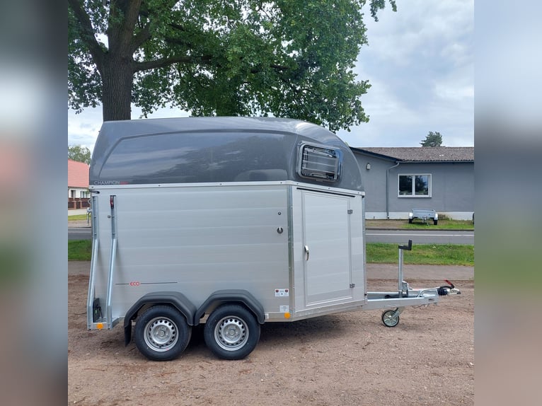 We are selling a new Böckmann Champion Esprit ECO with a tack room at a special price in slate grey metallic! - GVWR: 2400 kg - Unladen weight: 835 kg - Payload: 1565 kg - Original Böckmann full aluminum floor - Tack room - Tarpaulin lift - Interior lighting blue & white - Side step protection - Automatic jockey wheel - Shock absorbers for 100 km/h approval - Rubber floor glued and sealed - Lighting system with reversing lights and 13-pin plug !More new and used horse trailers in stock! Vehicle registration document shipping for registration possible in advance for an additional charge of €5! Viewing/pick-up in 16845 Großderschau by appointment under 033875-909588 possible at any time! Delivery by arrangement, trade-in, and financing available. Opening hours: Monday - Friday 8:00 AM - 5:00 PM