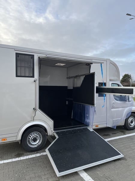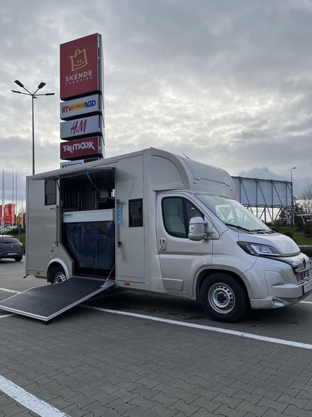 Szanowni Państwo, Oferujemy koniowóz na 2 konie — rok produkcji 2024 — nowa zabudowa z 2025 r. Sprzedaż prywatna, umowa kupna–sprzedaży. Pojazd w pełni sprawny, objęty fabryczną gwarancją. Samochód wyprodukowany w 2024 roku, posiada przebieg 29 000 km, natomiast zabudowa dla koni została wykonana w 2025 roku i jest całkowicie nowa, nieużywana. Do obejrzenia pod Lublinem, 21-025 Niemce. Parametry pojazdu: Rok produkcji: 2024 Przebieg: 29 000 km Pojemność: 2200 cm3 Moc: 180 km DMC 3500 kg Wzmocniony hak - możliwość pociągnięcia przyczepy do 3100 kg Liczba miejsc: 3 Kanapa z tyłu Miejsce do spania dla 2 osób Wyposażenie kabiny: Klimatyzacja Skórzana tapicerka Tempomat Radio / multimedia Kamera cofania Monitor do obserwacji koni Zabudowa dla koni (nowa, nieużywana): Koniowóz na 2 konie (zabudowa ogierowa) Okna + system wentylacji dla koni Kamera do obserwacji koni Oświetlenie dla koni — białe i niebieskie Klapa boczna załadunkowa — antypoślizgowa Mata antypoślizgowa 'pod' końmi Przegroda demontowalna Możliwość demontażu ścian Wykończenie w stali kwasoodpornej Siodlarnia Cena: 275 000 zł Serdecznie zapraszamy do kontaktu przez platformę lub pod nr tel 602 378 719 (WhatsApp/telefon).