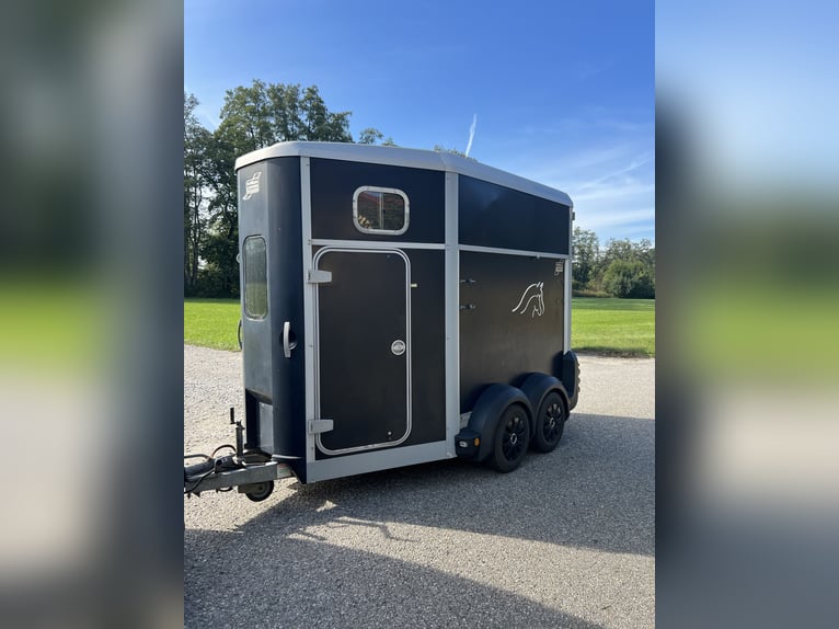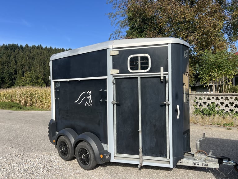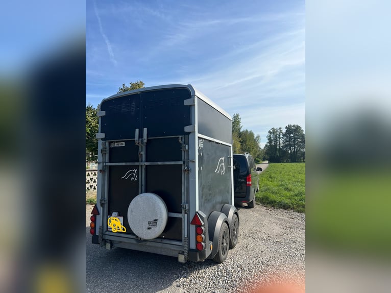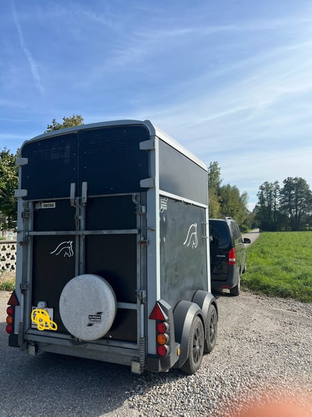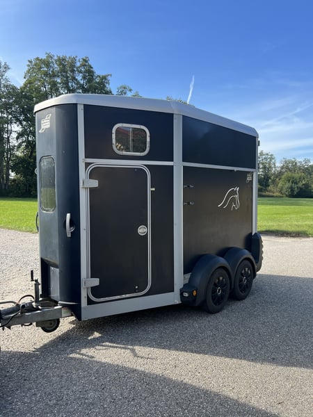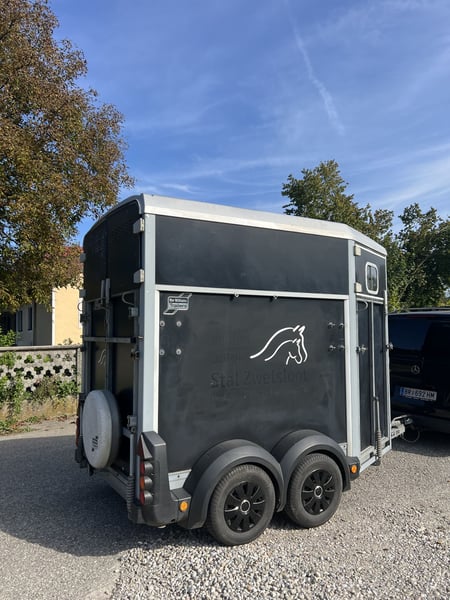 Dimensions (approx.): 1670 mm x 3160 mm x 2260 mm External dimensions (approx.): 2130 mm x 4300 mm x 2750 mm Maximum permissible gross weight: 2600 kg Payload capacity: approx. 1680 kg (payload varies depending on additional equipment) Manufacturer: Ifor Williams Trailers Year of manufacture: 2010 Features: - Horse trailer HB 506 (for 2 horses) - Trailer body made from aluminum composite material - Vertical corner posts with horizontal profiles (structural reinforcement) - Parabolic springs (suspension and wheel suspension system) - Door/ramp combination (aluminum composite with rubber lining) - Rear tailgate doors - Front exit on the right side (aluminum composite with rubber lining) - Roof hatch - Sliding windows on both sides (left and right) - Large front window - Lockable side door - Hay net rail - Interior lighting with switch - Spare wheel with holder and cover - Ball coupling (cast iron and lockable) - Vehicle documents included Additional equipment: - Aluminum floor with 12 mm rubber mat (removable) - Divider bars at front and rear (split and adjustable) - Removable middle partition - Foot protection on both sides - Panic latch release Chassis: - Leaf springs | Zinc-coated V-shaped drawbar with coupling | Support wheel | Reversing auto-lock
