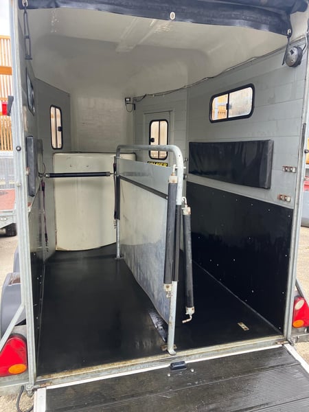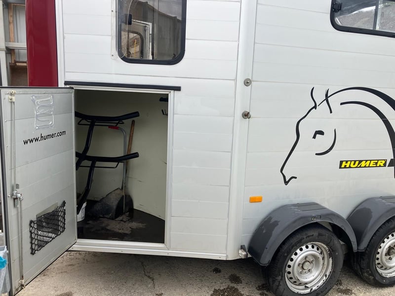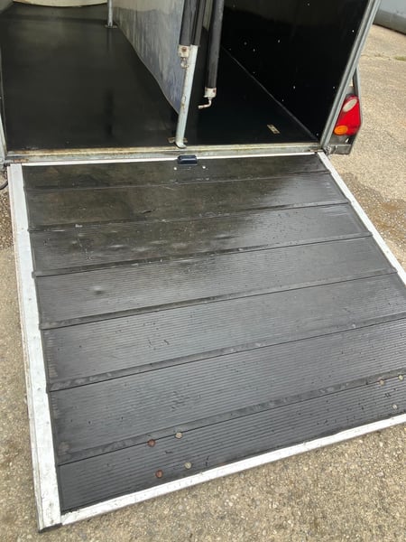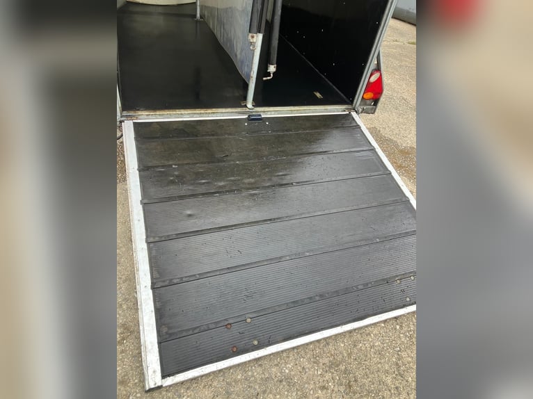 Aluminium horse trailer Cheval Liberte Pullman (for 2 horses), year of manufacture 2019 - Polyester roof and front (aerodynamic design) - Pullman V2 low-floor chassis - Aluminum rear ramp with swing and pivot function, rubber matting - Lockable tack room with large sliding window door - Canvas roll-up cover (air- and light-permeable) - Mounted shock absorbers on the axles, approved for 100 km/h - Lockable side door (large size with sliding window) - Interior lighting with switch - Vehicle documentation included Additional features - Aluminum floor with 8 mm rubber matting (glued and sealed) - Tinted sliding windows on both sides (left and right) - Divided and adjustable front and rear partition bars Price: €6,999 + VAT Photos taken on September 1, 2025