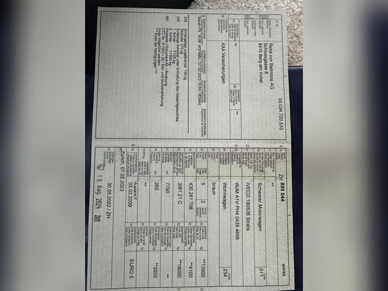 STX IVECO Stralis Truck with horse transport living quarter, bathroom with toilet and shower, suitable for 3-4 horses, approved for 100 km/h, with 5 registered seats Vehicle engine in excellent condition with regular maintenance. Price: CHF 108,100 First registration: March 2009, approximately 140,559 km, 265 kW (360 hp), automatic transmission, 13.9 tons unladen weight, 18 tons gross permissible weight, MOT valid until August 2024, trailer load capacity of 3,500 kg, video surveillance for the horses and rearview camera, temperature display for the horse compartment, leather seats. Spacious and beautifully equipped living area with up to 6 sleeping places, large top sleeper bed, air conditioning, parking heater, kitchenette with sink, refrigerator, stove, and microwave, numerous drawers and cabinets, additional bed above the bathroom, new diesel generator, and more. Separate bathroom with shower, sink, mirror, cabinet, standard toilet, towel rack, etc., with underfloor heating. Additional converted large room with fold-out bed (140 cm) and large built-in wardrobes, air-conditioned. All mattresses are extra comfortable and very nearly new. Includes additional mattress protectors and custom-made bed covers. Horse compartment for up to 3-4 horses, with padded adjustable partitions, winch for tournament box, built-in automatic waterers, side windows with protective grilles, roof window, lighting and fan, rear ramp with ramp limiter. External shower/ rinsing hose and small outdoor washbasin next to the large tack storage compartment. Many storage compartments and additional side external power outlets. The writing will be removed. Further information and pictures available upon request at any time! 0794305031