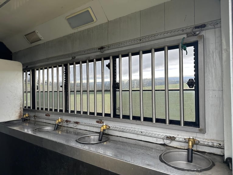 Camion IVECO Stralis STX avec logement pour chevaux, comprenant une habitation, une salle de bain avec WC et douche, pour 3-4 chevaux. Homologué pour 100 km/h et doté de 5 places assises enregistrées. Le moteur du véhicule est en excellent état et entretenu régulièrement. Prix : 108'100 CHF Première mise en circulation : 03/2009, environ 140'559 km, 265 kW (360 ch), boîte automatique, poids à vide 13,9 t, PTAC 18 t, contrôle technique valable jusqu’en 08/2024, capacité de remorque 3'500 kg, vidéosurveillance pour les chevaux et caméra de recul, indicateur de température pour la zone chevaux, sièges en cuir. Superbe et spacieux logement pouvant accueillir jusqu’à 6 couchages, avec un grand lit de repos, climatisation, chauffage stationnaire, kitchenette avec évier, réfrigérateur, plaque de cuisson et micro-ondes, nombreux tiroirs et placards, un lit supplémentaire au-dessus de la salle de bain, générateur diesel neuf, et bien plus encore. Salle de bain séparée avec douche, lavabo, miroir, armoire, toilettes classiques, porte-serviettes, etc., chauffage par le sol. Espace supplémentaire aménagé avec un canapé-lit de 140 cm et grands placards encastrés, climatisé. Tous les matelas sont très confortables, presque neufs, avec protection en molleton supplémentaire et housses sur mesure. Espace chevaux pouvant accueillir jusqu’à 3-4 chevaux, avec cloisons rembourrées ajustables, treuil pour box de compétition, abreuvoirs automatiques intégrés, fenêtres latérales avec grillage de protection, fenêtre de toit, éclairage et ventilation, rampe arrière avec limiteur de rampe. Tuyau de douche ou rinçage extérieur et petit lavabo extérieur près du grand compartiment à équipement équestre. De nombreux compartiments de rangement et prises électriques supplémentaires sur le côté extérieur du véhicule. La signalisation sera encore retirée. Plus d’informations et de photos disponibles sur demande à tout moment ! 0794305031