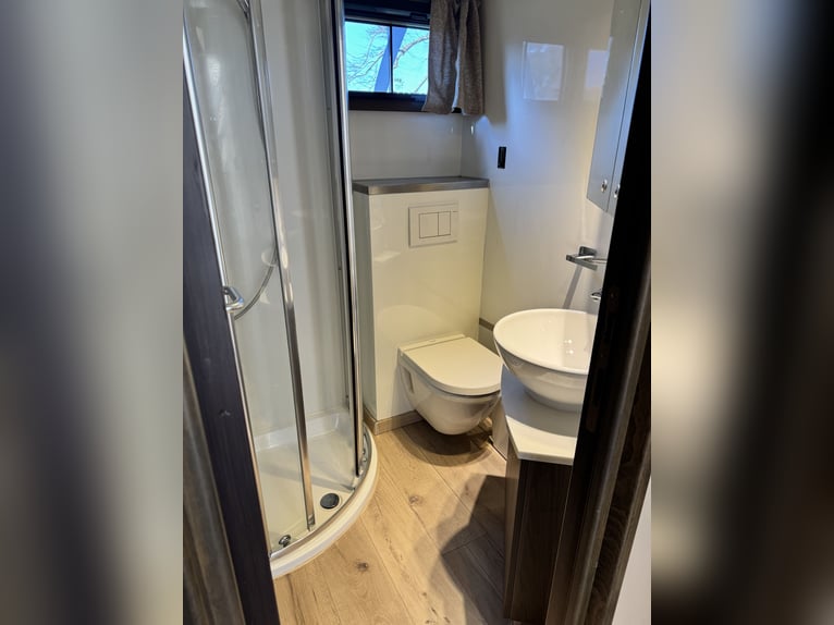 STX IVECO Stralis LKW Pferdewohnmobil mit Wohnung, Bad mit WC und Dusche für 3-4 Pferde auf 100 km/h zugelassen und 5 eingetragene Sitzplätze Fahrzeug Motor in Top Zustand und regelmässiger Wartung. Preis CHF 108100.— EZ 03/2009, ca. 140'559 km, 265 kW (360 PS), Automatik, 13,9t Leergewicht, 18t zulässiges Gesamtgewicht, MFK 08.2024, Anhängerlast 3.500 kg, Videoüberwachung für die Pferde und Rückfahrkamera, Temperaturanzeige für das Pferdeabteil, Ledersitze Grossartige wunderschöne Wohnung mit bis zu 6 Schlafplätzen mit großem Top-Sleeper-Bett, Klimaanlage, Standheizung, Küchenzeile mit Waschbecken, Kühlschrank, Kochfeld und Mikrowelle, viele Schubladen und Schränke, weiteres Bett über dem Bad, neuer Dieselgenerator, uvm. separates Bad mit Dusche, Waschbecken, Spiegel, Schrank, normale Toilette und Handtuchhalter etc., Bodenheizung Weiterer ausgebauter riesiger Raum mit Klappbett 140 cm und grossen Einbauschränken, klimatisiert. Alle Matratzen sind extra komfortabel und sehr neuwertig. Inkl. Extra Moltonschutz und Bettüberzüge auf Mass. Pferdeabteil für bis zu 3-4 Pferde, gepolsterte Trennwände verstellbar, Seilwinde für Turnierkiste, eingebaute Selbsttränken, seitliche Fenster mit Schutzgitter, Dachfenster, Licht und Lüfter, Heckrampe mit Rampenbegrenzer. Dusch/Abspritzschlauch aussen und kleines Waschbecken aussen neben dem grossen Reitzubehörstaufach. viele Staufächer und zusätzliche Steckdosen seitlich außen am Fahrzeug. Schrift wird noch entfernt. Weitere Informationen und Bilder gerne jederzeit auf Anfrage! 0794305031