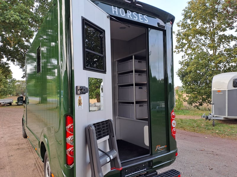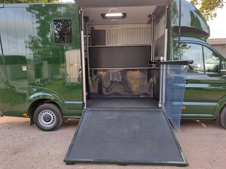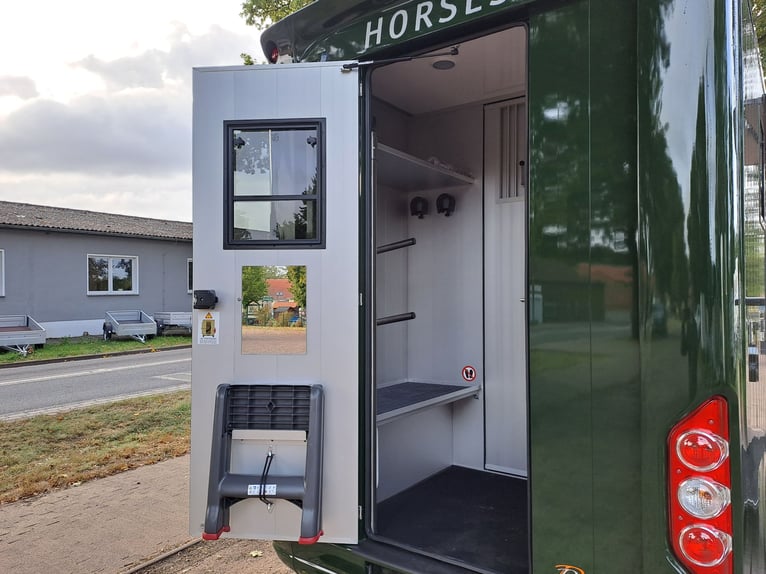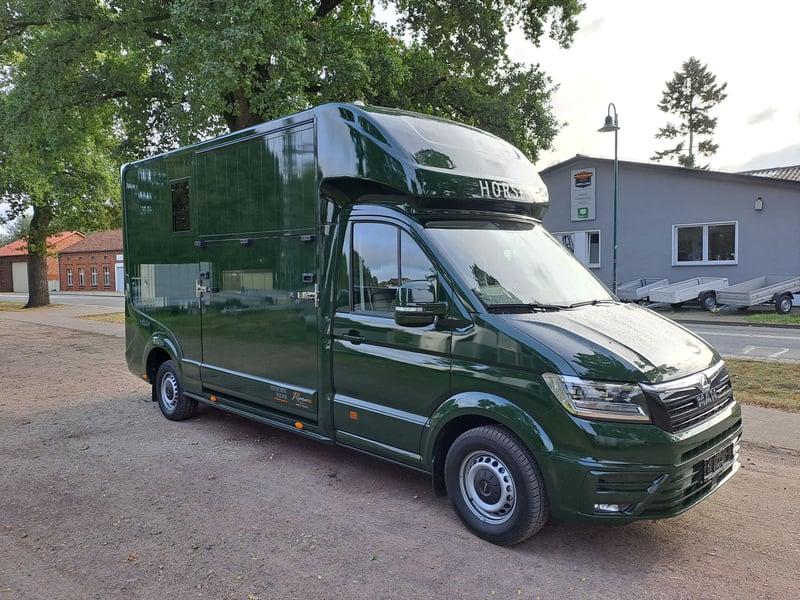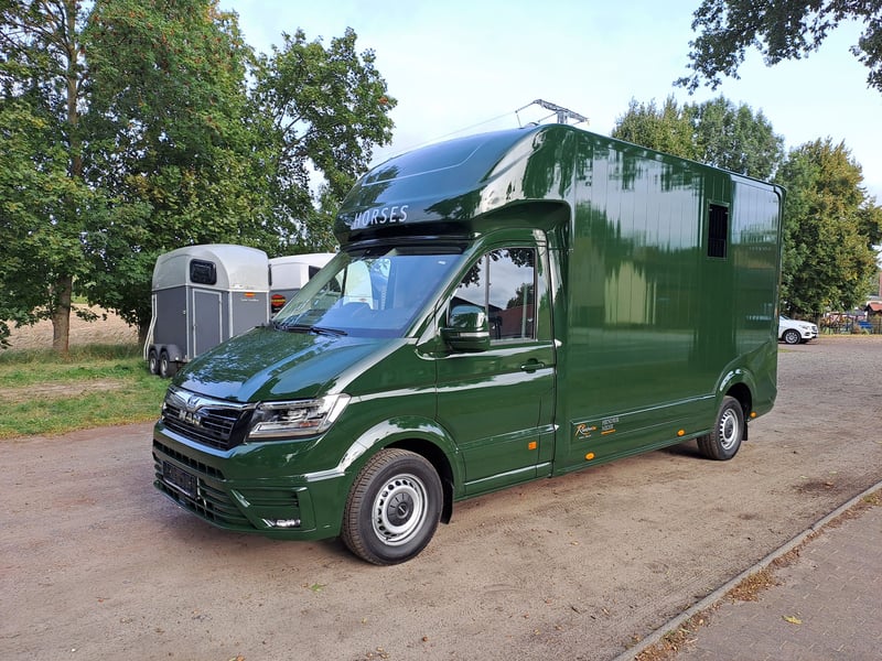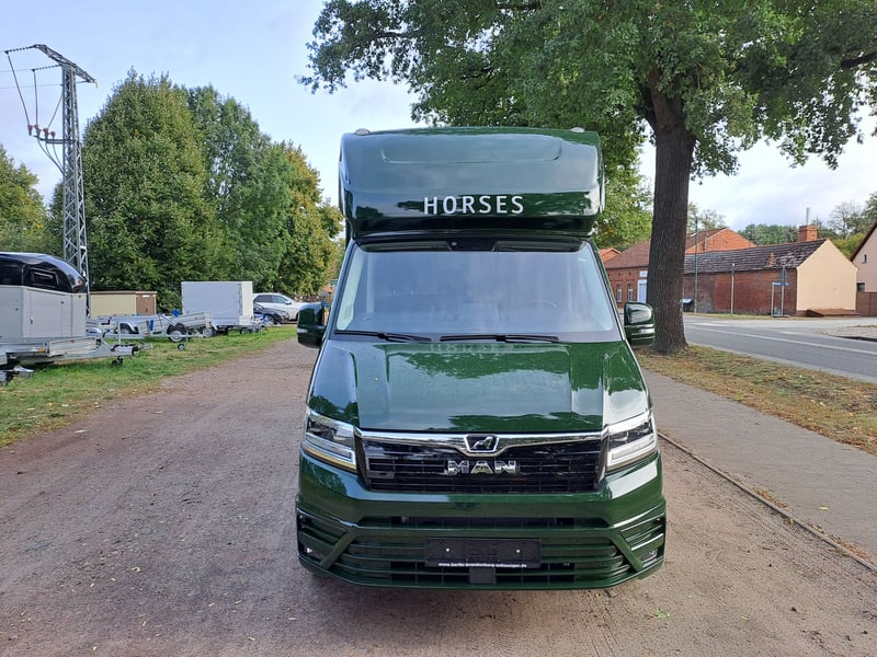 We are selling a new MAN Roelofsen horse transporter Parados XL NET PRICE: 105.000.-€ Gross price: 124950,-€ Stallion equipment ONE 4.4t total weight Trailer hitch 3 seater Turbo Diesel Power 180 hp Euro 6 DTemp Fuel tank 80 l height-adjustable steering wheel Velour floor mats Interior anthracite 8 speed automatic Front and rear disc brakes Driver's seat adjustable with armrest Passenger bench electric windows Electrically heated mirrors can be adjusted in two ways Green Badge Heat-insulating glazing LED Main Lighting tinted windows Temperature gauge in the horse compartment Fog lights in the bumper Rain and light sensor Daytime running lights Comfort driver's seat and passenger bench Additional LED brake light Blind Spot Assist Right Side Turning Lighting Multifunction steering wheel max. total height 3.10 m Viewing/pick-up in 16845 Großderschau by arrangement at 033875-909588 possible at any time! Opening hours: Monday - Friday 8.00 a.m. - 5.00 p.m.