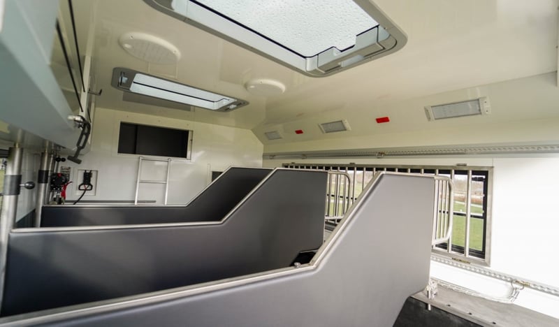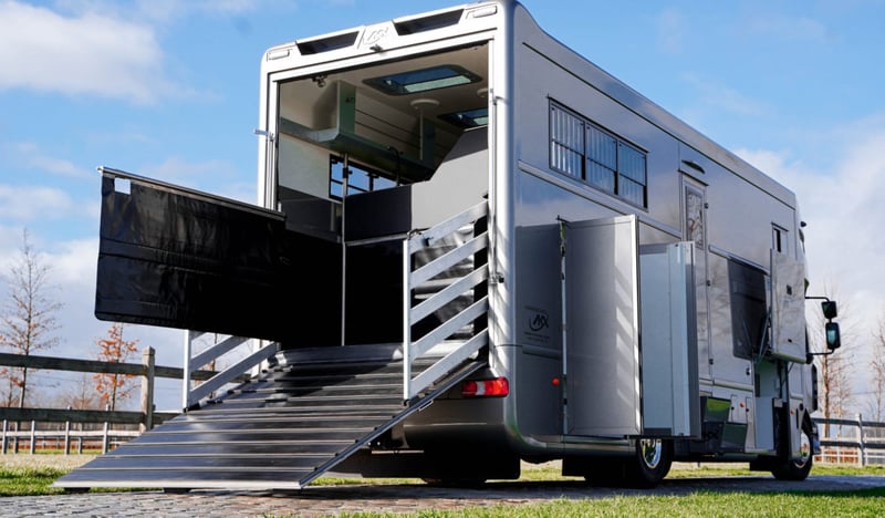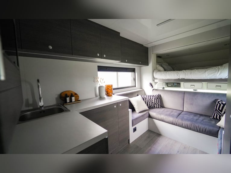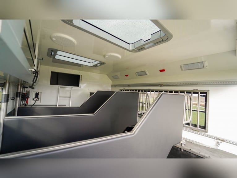 FR: Ce véhicule est très bien équipé. Autour du véhicule, de nombreux compartiments sont disponibles pour le stockage des matériaux. À l'intérieur, il y a une cuisine et un salon très pratiques, qui sont magnifiquement finis en bois. Equipement très confortable comprenant un réservoir de 450 litres d'eau douce et 300 litres d'eau usée, climatisation LG, surveillance par caméra en direct de l'espace chevaux, contrôle de la température de l'espace chevaux, salle de bain pratique avec toilettes et douche, cuisine avec réfrigérateur, congélateur, micro-ondes, possibilité de regarder la télévision, GPS, transmission automatique, suspension pneumatique et bien plus encore... Leasing disponible, contactez-nous pour plus d'informations!! NARROW: Marque : AKX Poids: 16T Chevaux: 4 Année: 2021 This vehicle is very well equipped. Around the vehicle there are many compartments for storing materials. Inside, there is a very practical kitchen and living room, which are beautifully finished in wood. Very comfortable equipment including a 450 litre fresh water tank and 300 litre waste water tank, LG air-conditioning, live camera surveillance of the horse area, temperature control of the horse area, practical bathroom with toilet and shower, kitchen with fridge, freezer, microwave, TV watching facilities, GPS, automatic transmission, air suspension and much more... Leasing available, contact us for more information! Brand: AKX Weight: 16T Horses: 4 Year: 2021 NL: This vehicle is very well equipped. Around the vehicle, there are many compartments available for the storage of materials. Inside there is a very practical kitchen and living room, which are beautifully finished with wood. Very comfortable equipment including a 450 litre fresh water tank and 300 litre holding tank, LG air conditioning, live camera surveillance of the horse area, temperature control of the horse area, practical bathroom with toilet and shower, kitchen with fridge, freezer, microwave, TV viewing facilities, GPS, automatic gearbox, air suspension and much more... Leasing possible, contact us for more information! Brand: AKX Weight: 16T Horses: 4 Year: 2021