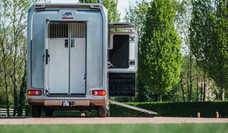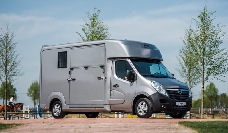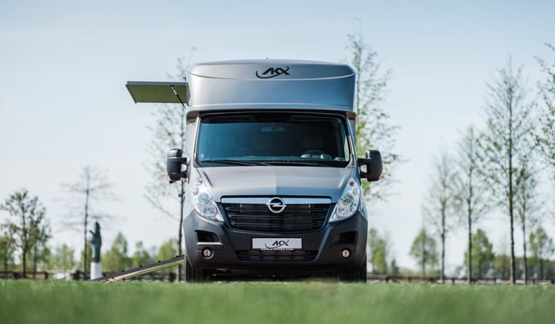 Marca: AKX Telaio: Opel Movano Peso: 3,5T Potenza (CV): 165 Cavalli: 2 Dimensioni: 2,1 x 6,2 x 2,8 m Spazio cabina Sedili con braccioli Radio / MP3 / Bluetooth - GPS Finestrini e specchietti elettrici Chiusura centralizzata Gancio traino Climatizzatore Cruise control Fari fendinebbia Spazio cavalli Paratia regolabile Ventilazione lucernario e finestrini laterali Illuminazione a LED blu/bianco Sellaio con portasella e portahoof Pavimentazione in gomma Registrazione della temperatura Tubo dell'acqua Fissaggi per le catene