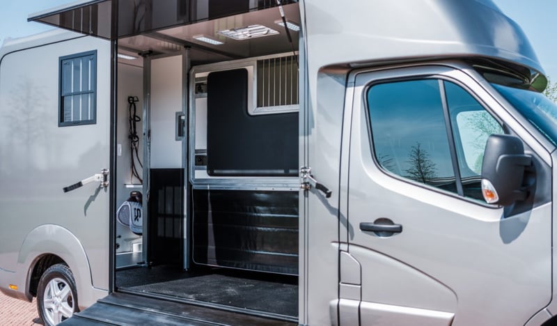 Marque : AKX Châssis: Opel Movano Poids: 3.5T Puissance (CV): 165 Chevaux: 2 Dimensions: 2.1 x 6.2 x 2.8 m Espace Cab Sièges avec accoudoirs Radio / MP3 / Bluetooth - GPS Vitres et rétroviseurs électriques Verrouillage central Attelage de remorque Climatisation Régulateur de vitesse Feux de brouillard Espace Cheval Cloison ajustable Ventilation Fenêtre de toit et fenêtre latérale Eclairage LED bleu/blanc Sellerie avec porte-selles et porte-brides Revêtement de sol en caoutchouc Enregistrement de la température Tuyau d'eau Fixation des chaînes Brand: AKX Chassis: Opel Movano Weight: 3,5T Power (HP): 165 Horses: 2 Dimension: 2.1 x 6.2 x 2.8 m Cabin Seats with armrests Radio / MP3 / Bluetooth - GPS Electric windows and mirrors Central locking system Trailer hitch Air conditioning Cruise control Fog lights Horse Area Adjustable partition Electrical air extractor Skylight and lateral windows LED lighting blue/white Tackroom with saddle and bridle holders Rubber flooring Temperature registration Water hose Fastening chains Brand: AKX Chassis: Opel Movano Weight: 3.5T Power (HP): 165 Horses: 2 Dimensions: 2.1 x 6.2 x 2.8 m Cabin Seats with armrests Radio / MP3 / Bluetooth - GPS Electric windows and mirrors Central locking Trailer hitch Air Conditioning Cruise Control Fog lights Horse section Adjustable separation Electric air extraction system Skylight and lateral windows LED lights blue/white Tack room with saddle and bridle holders Rubber floor Hydra Temperature recording Attachment chains