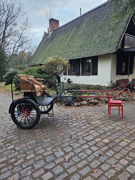 Verkaufe eine Gig, Sondermodell, da die Rückbank nicht durchgehend ist, sondern mit einem verstellbaren Fahrerbocksitz, Höhe 1,30, ausgestattet ist, 29 Zoll Luftreifen, Scheibenbremse, leichtläufig und gut ausbalanciert, für Pferde des Typ Großpferde, Tinker, Noriker, Friesen, kräftige Haflinger gut geeignet, abschließbare Stauräume und Kisten