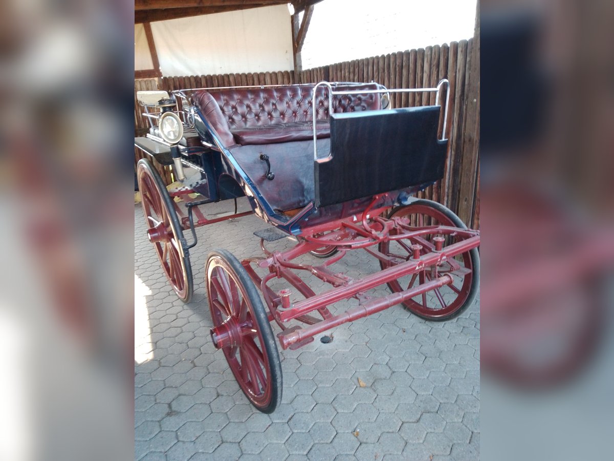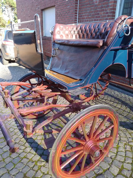 Zum Verkauf steht eine wunderschöne, klassische Wagonette aus der Zeit um 1920. Diese Kutsche besticht durch ihre traditionelle Optik und ihre hohe Funktionalität – ein idealer Wagen für Gesellschaftsfahrten oder den stilvollen Freizeitfahrsport. Optik & Design: • Farbgebung: Edler dunkelblauer Aufbau kombiniert mit einem markanten, roten Fahrgestell und roten Rädern. • Kotflügel: Klassische Holzkotflügel, passend zum Gesamtdesign. • Polsterung: Die Sitze sind mit dunkelrotem Wischleder in hochwertiger englischer Knopfheftung bezogen, was der Kutsche eine besonders exklusive Note verleiht. Technische Details: • Baujahr: ca. 1920 • Räder: Original Holzräder mit Vollgummibezug (vorne 0,90 m / hinten 1,15 m Durchmesser) • Spurbreite: 1,40 m (bietet eine sehr sichere und stabile Straßenlage) • Bockhöhe: 1,60 m (für beste Übersicht des Fahrers) Besonderheit & Zustand: Das Besondere an diesem Modell: Die hinteren Sitzbänke können abgenommen werden, was die Kutsche sehr variabel im Einsatz macht. Der Wagen ist sehr gut gepflegt, weist lediglich leichte, authentische Gebrauchsspuren auf und ist sofort fahrbereit. Ein ehrliches, fahrbereites Fahrzeug für Liebhaber des traditionellen Fahrsports, die eine robuste und zugleich elegante Wagonette suchen.