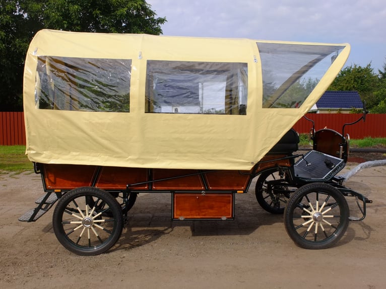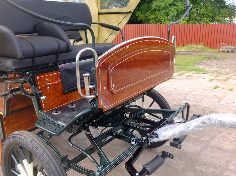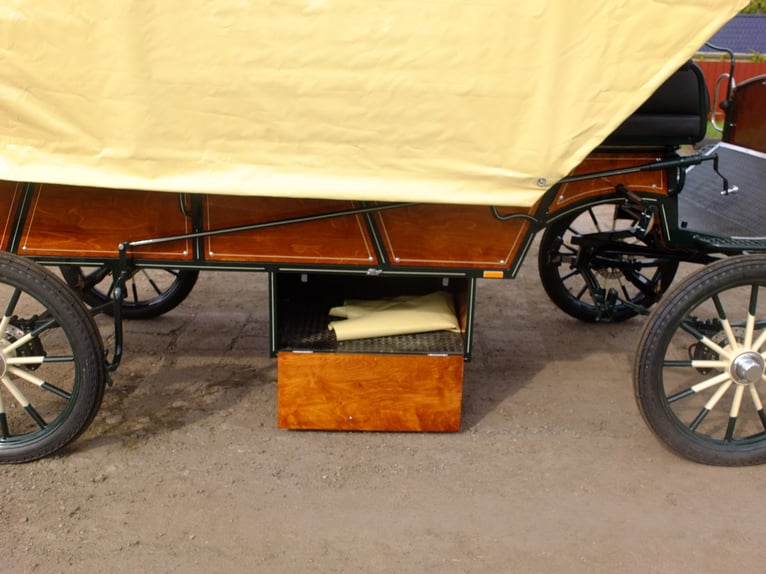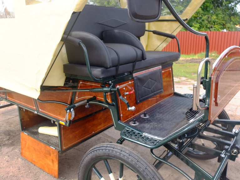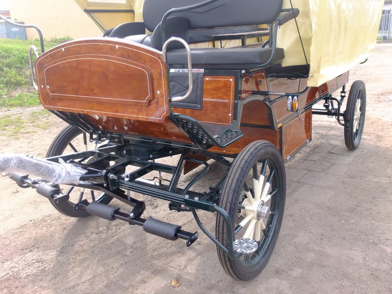 Beautiful large carriage, new, suitable for the whole family and small social outings. Wheels: 25-inch road profile, disc brakes with ventilation, handbrake, LED lighting system, interior lighting, large storage compartment below, continuous benches at the back, each 2.50m. Double steps at the back for folding up. Suitable for horses from 145cm to 170cm. Constantly new carriages for sale in various designs. On request, we can also manufacture carriages according to your specifications. Additionally, we always have driving and leisure horses for sale in various colors and sizes. Phone: 0173-3843407 If interested, please call, no emails! Partial payment for carriages possible!