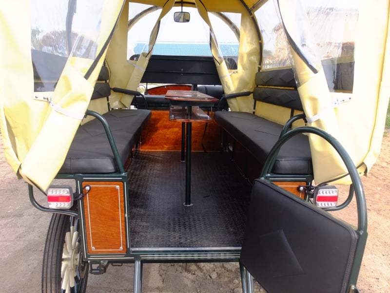 Mooie grote wagen, nieuw, geschikt voor het hele gezin en kleine gezelschapstochten. Wielen: 25 inch straatprofiel, schijfremmen met ventilatie, krukrem, LED-verlichting, binnenverlichting, grote opbergruimte onderaan, doorlopende banken achterin van elk 2,50 m. Dubbele trap achter om op te klappen. Geschikt voor paarden van 145 cm tot 170 cm. Altijd nieuwe wagens in verschillende uitvoeringen te koop. Op aanvraag kunnen we wagens ook naar uw wensen laten maken. Verder altijd rij- en recreatiepaarden in verschillende kleuren en maten te koop. Tel.: 0173-3843407 Bij interesse graag bellen, geen e-mail! Deeltijdbetaling bij wagens mogelijk!