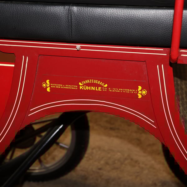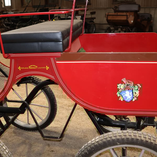 Kühnle Spider Leicht Einspänner Gummibereift Scheibenbremsen Marke: Kühnle Kutschenart: Spider Leicht Gespannart: Einspänner Pferdeart: Haflinger / Ponny Zustand: Sehr guter Zustand (Lack in sehr gutem Zustand, Polster in sehr gutem Zustand) Fahrbereit: Ja, Kutsche ist voll fahrbereit und fährt sich ohne Probleme Farbe: Rot mit Schwarz/Weißen/Goldenen Akzenten (+ Bemalung) Lieferumfang: Siehe Bilder Sollten Sie weitere Infos wie Maße o.ä. wünschen oder weitere Bilder wünschen, können Sie uns gerne diesbzgl. kontaktieren! HINWEIS: Die Kutsche wird im Auftrag einer privaten Reithofauflösung verkauft. Sie erhalten von uns eine Rechnung jedoch unter §25a Differenzbesteuerung. Bitte haben Sie Verständnis, dass es durch den Verkauf im Auftrag zu Verzögerungen von 1-2 Tagen kommen kann, sollten Rückfragen von Ihrer Seite aus sein, da diese zuerst an den Eigentümer weitergeleitet werden müssen. Es ist noch ein Konvolut Deichsel o.ä. vorhanden wovon evtl. noch Teile zu der Kutsche passen würden. Vor Ort können Sie gerne sehen ob Sie eines der Teile für die Kutsche noch haben wollen. Details können bei einer Besichtigung gerne geklärt werden. Abholung bevorzugt! Eine Lieferung kann innerhalb eines gewissen Umkreises gegen Aufpreis durchgeführt werden, schreiben Sie uns hierfür bitte an um mögliche Details zu klären. 1- Monatige Rücknahme möglich. 12-Monatige Gewährleistung! Inkl. Rechnung mit Differenzbesteuerung nach §25a UStG. Bei weiteren Fragen oder Anregungen nehmen Sie gerne Kontakt mit uns auf. Weitere interessante Artikel finden Sie auf unserer Shopseite.