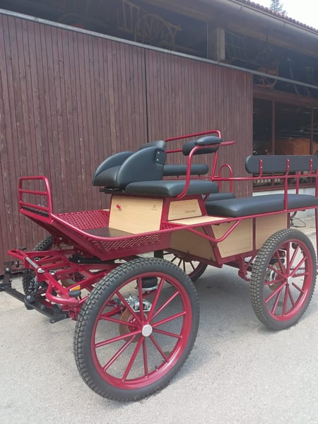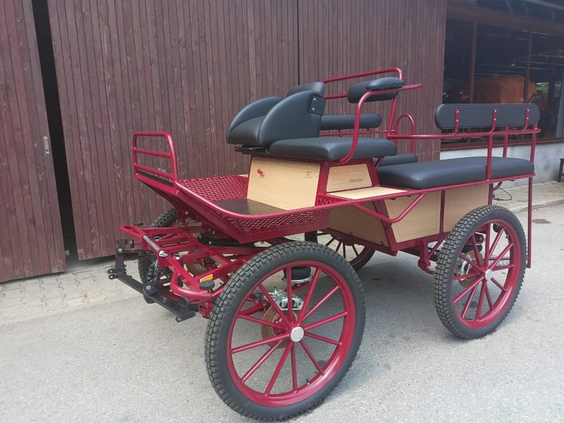 Axle distance: 138 cm Wheels: 27″ Rear seats width: 105 cm Suspension: B pneumatic suspension (new type) Configuration: single or double harness Color: red Upholstery: imitation leather For more information: Email: info@vprege-repnik.si Phone: +386 40 984 220 / +386 40 705 868 3900 € + VAT