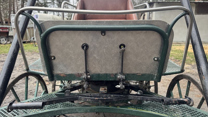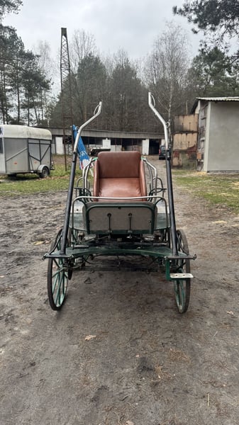 Robustly constructed, well-riding carriage suitable for medium and smaller horses. Mechanically and structurally in good condition, requires cleaning and repainting. Width: 125 cm Year of manufacture: approximately 2000. Newly fitted wheels, straight and undamaged. New shaft with storage compartment. New bearings on all wheels. Brakes on both axles. Holders for lanterns. It would be advisable to replace the foam padding in the rear seats. I am selling or trading for a larger marathon carriage, preferably with a brake on the pole.