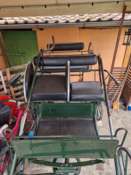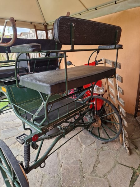 Carriage, second-hand Track width 125 cm Trestle height approx. 123 cm Seat height rear 112 cm Tire size 70 cm Length of the carriage approx. 210 cm I have ridden it with my German pony. Only being sold because my pony is retiring.