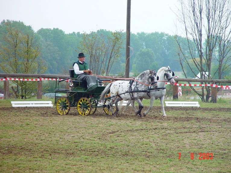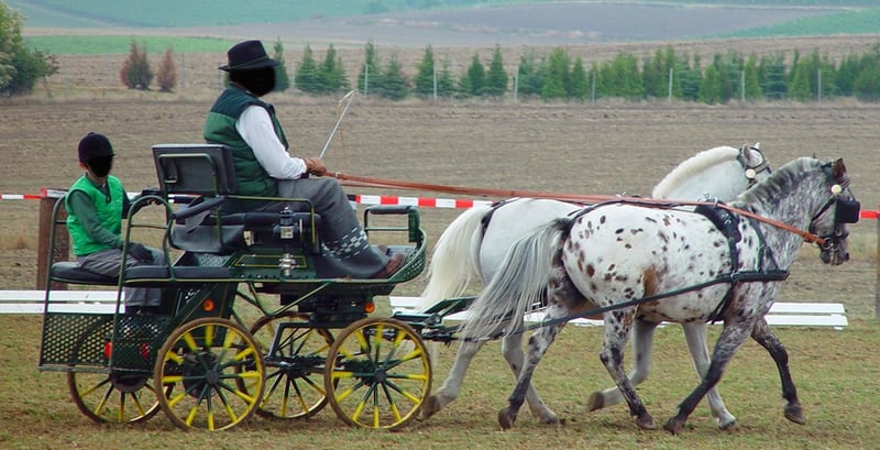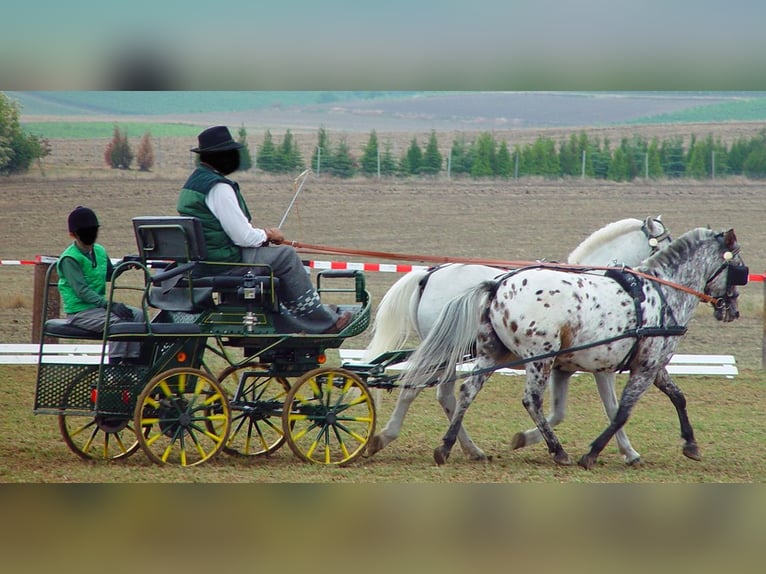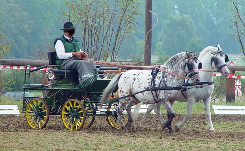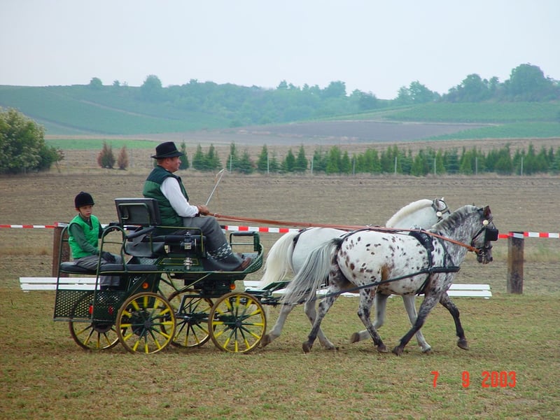 I offer a pony carriage (marathon cart) for one or two ponies. The ponies in the photos are approximately 130cm tall. Accessories: Lamp holders on both sides for dressage driving Weight: approximately 230kg Shaft height: 125 cm Platform height: 80 cm Seat width at the back: 50 cm Track width: 120 cm 12-spoke wheels with solid rubber tires (60cm diameter) and fixed hub without step-up aid 4 leaf springs 4 disc brakes with hydraulic parking brake Single harness bar Double tree Tractor tow bar