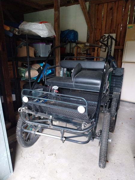 Offered is a single horse carriage with biothane breastcollar harness in size Cob. The carriage and harness have been used only 3 times so far. The carriage costs €1400 and the harness €800. If interested, please call briefly to discuss an appointment. Thank you.