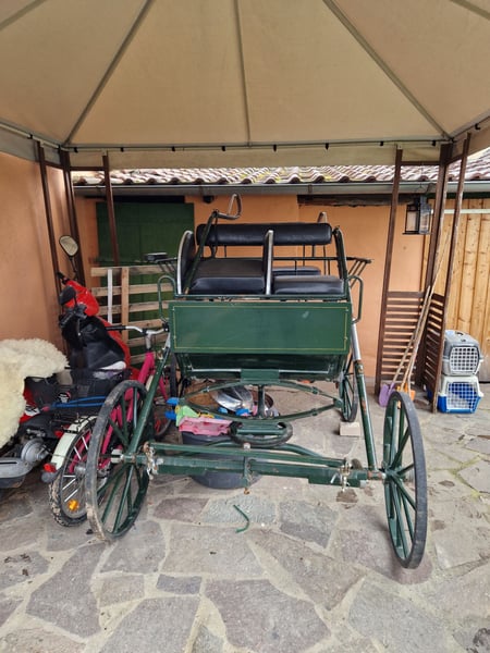 Carriage, second-hand Track width 125 cm Trestle height approx. 123 cm Seat height rear 112 cm Tire size 70 cm Length of the carriage approx. 210 cm I have ridden it with my German pony. Only being sold because my pony is retiring.