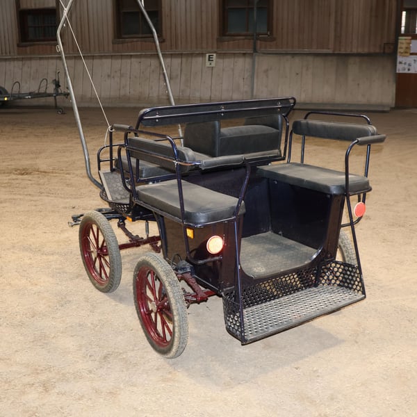 Kühnle Wagonette Kleinpferde Ein/Zweispänner Kutsche Marke: Kühnle Kutschenart: Wagonette Gespannart: Ein- und Zweispänner Pferdeart: Kleinpferde Zustand: Gebrauchter aber guter Zustand (Leichte Kratzer am Lack an manchen Stellen; Sitze in Top Zustand) Fahrbereit: Ja; Kutsche ist voll fahrbereit und fährt sich ohne Probleme Farbe: Dunkelblau mit roten Akzenten Lieferumfang: Siehe Bilder Sollten Sie weitere Infos wie Maße o.ä. wünschen oder weitere Bilder wünschen, können Sie uns gerne diesbzgl. kontaktieren! HINWEIS: Die Kutsche wird im Auftrag einer privaten Reithofauflösung verkauft. Sie erhalten von uns eine Rechnung jedoch unter §25a Differenzbesteuerung. Bitte haben Sie Verständnis, dass es durch den Verkauf im Auftrag zu Verzögerungen von 1-2 Tagen kommen kann, sollten Rückfragen von Ihrer Seite aus sein, da diese zuerst an den Eigentümer weitergeleitet werden müssen. Abholung bevorzugt! Eine Lieferung kann innerhalb eines gewissen Umkreises gegen Aufpreis durchgeführt werden, schreiben Sie uns hierfür bitte an um mögliche Details zu klären. 1- Monatige Rücknahme möglich. 12-Monatige Gewährleistung! Inkl. Rechnung mit Differenzbesteuerung nach §25a UStG. Bei weiteren Fragen oder Anregungen nehmen Sie gerne Kontakt mit uns auf. Weitere interessante Artikel finden Sie auf unserer Shopseite.