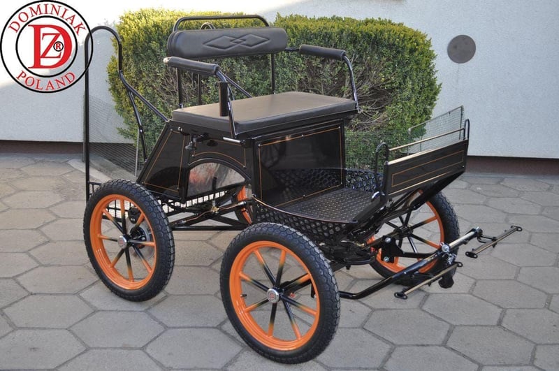 Shetty- und Ponykutsche typ 105 c Die Shetty- und Ponykutsche ist ein geräumige, comfortable Kutsche für bis zu vier Personen. Die vordere Sitzbank bietet Platz für Zwei Personen Die Kutsche kommt standardmäßig in der Einspänner- oder Zweispännerausführung. Deichsel wird direkt mitgeliefert. Die Kutsche ist geeignet für Shettys und Ponys bis zu einem Stockmaß von ca. 127cm. Auststattung: - Sitzbreite: vorne: 87.5 cm, hinten: 57 cm - Sitzhöhe: 92 cm - vordere Sitzbank gefedert - Achsen gefedert - Scheibenbremsen auf der Hinterachse - integrierter Leinenhalter - Peitschenhalter - Zweispännerausführung Gewicht:130 kg Spurbreite: 110 cm Räder: 16" x 16" Scheibenbremsen: hinten