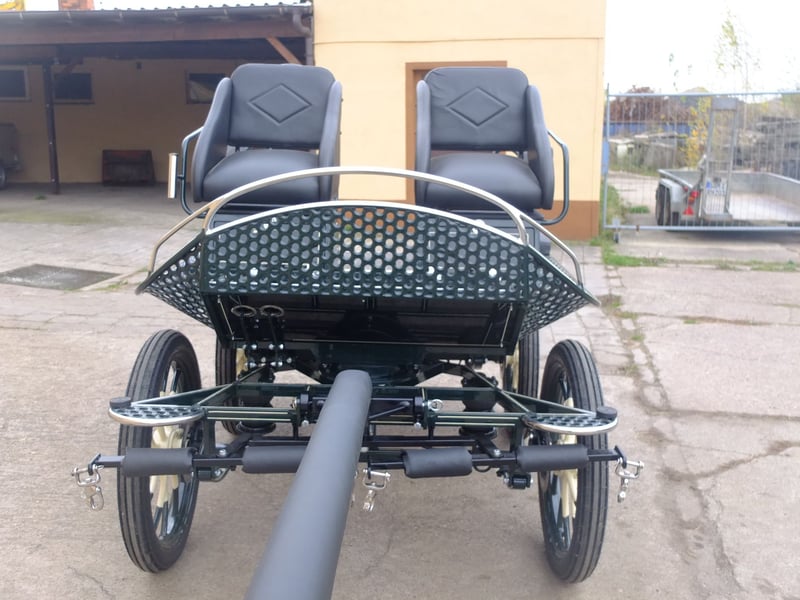 Schöner Fahrschulwagen, neu, mit 2 Schalensitzen und 2 Staufächern, für Pferde von 145cm-185cm Spurbreite: 150/160cm Räder:25/27 Zoll Straßenprofil Sitzbänke hinten 100cm 4 Scheibenbremsen von Bit Edelstahlumrahmung Anlieferung möglich. Komplette Lichtanlage inklusive Batterieladegerät können für 300euro mit installiert werden. Ständig neue Kutschen verschiedener Modelle sowie Pferde aller Art preiswert im Angebot! Bei Interesse bitte anrufen, keine Mail! Tel.: 0173-3843407