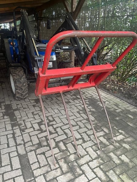 Stoll Forke mit abnehmbaren Zinken. Mit zwei Zinken für Ballen oder mit vier Zinken für Misr verwendbar. Euroaufnahme. Zu verkaufen
