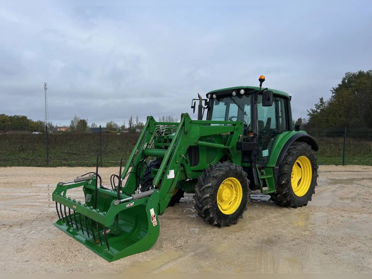 Année : 2001 Heure de Fonctionnement:7782 Puissance: 90 Ch Vitesse : 40 Km/h Type et Commande de Boîte de Vitesses:PowerQuad Vitesse 24/24 Inverseur Hydraulique ÉQUIPEMENTS - 4 Roues motrices -Prise de force 540/1000 tr/min -Relevage Arrière -Attelage 3 points -2 Distributeurs Hydrauliques Arrières -Chargeur John Deere avec joystick -Benne Multi Services Magsi (Largeur 2m10 - Hauteur : 840 mm - Profondeur : 910 mm) -Pneus avant 380/70R24, -Pneus arrière 480/70R34 -Tous les accessoires d’attelage (Barre-Piton-Échelle-3e Point etc...)