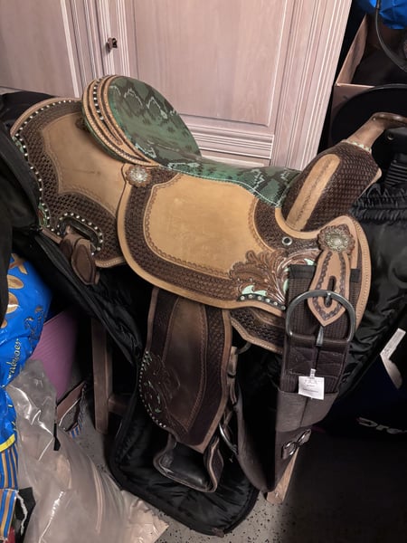 Nieuw western zadel met singel beschermhoes en pad en wolletje Alles nieuw half jaar oud