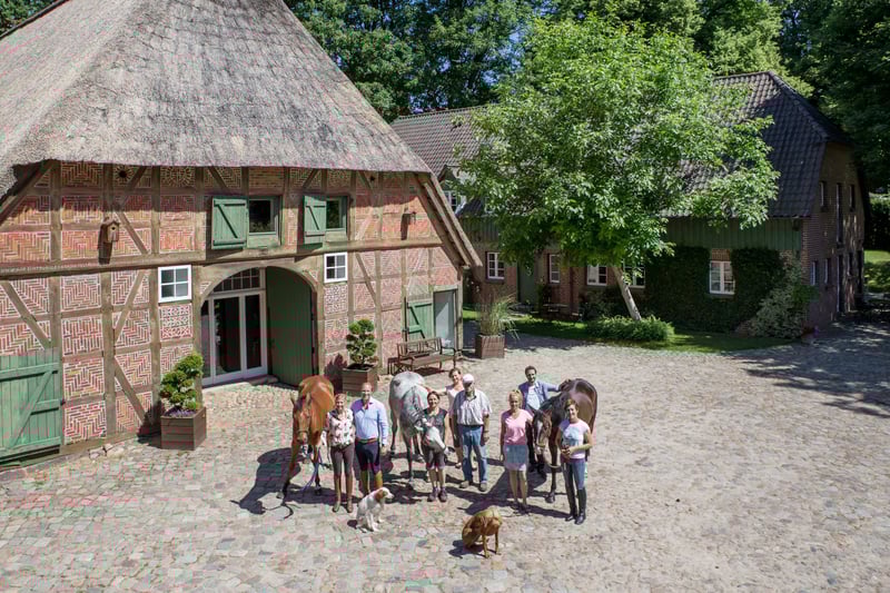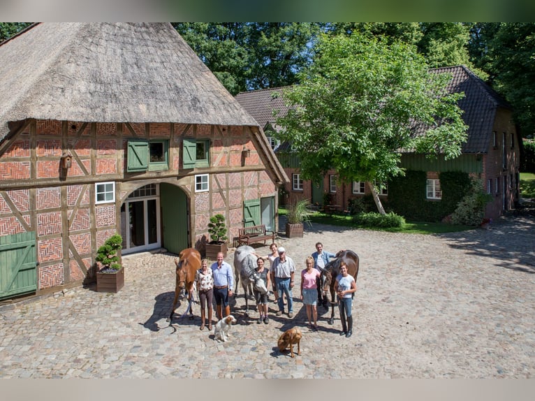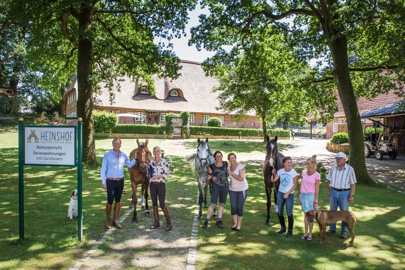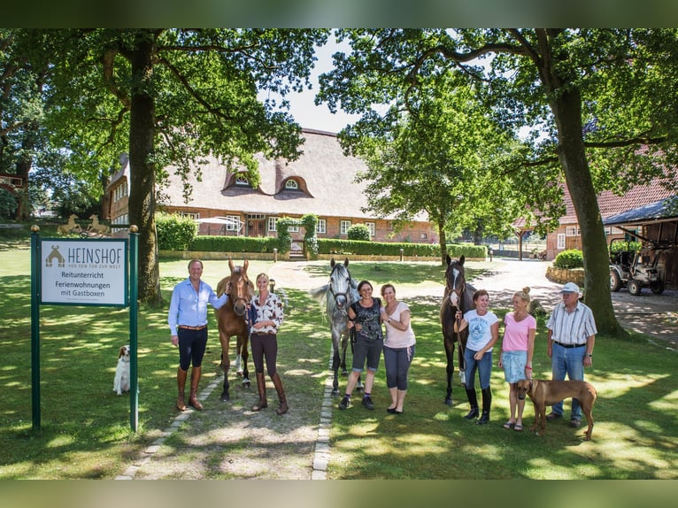 Cosa c'è di speciale nel centro di equitazione Heinshof vi offre i migliori appartamenti per le vacanze e cavalli sportivi da affittare, noleggiare o acquistare. In mezzo alla natura della Landa di Luneburgo e alle porte di Amburgo: l'ideale per le vacanze con i cavalli, la famiglia, il partner e per imparare a cavalcare correttamente. Vacanze a cavallo, lezioni di equitazione per dressage, salto ostacoli o passeggiate guidate, negozio in fattoria e molto altro. - Pernottamenti a partire da 43,80 €/notte per persona. I nostri cavalli di qualità o gli spaziosi e curati box per gli ospiti aspettano già il vostro arrivo. Naturalmente, la vostra auto elettrica può essere parcheggiata presso la stazione di ricarica della fattoria. Vacanze a cavallo a 5 stelle, cavalli sportivi Nella regione equestre tra Amburgo, Brema e Hannover, potete imparare a cavalcare, anche se siete principianti, cavalieri di ritorno o adulti, e godervi passeggiate guidate e vacanze con i cavalli. La vostra vacanza a cavallo o la ricerca di cavalli, direttamente nel parco naturale. Vacanze con o senza cavallo, per cavalieri e accompagnatori. L'Heinshof originale - Anno 1540 Landa di Luneburgo.