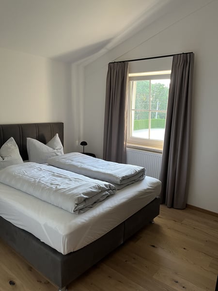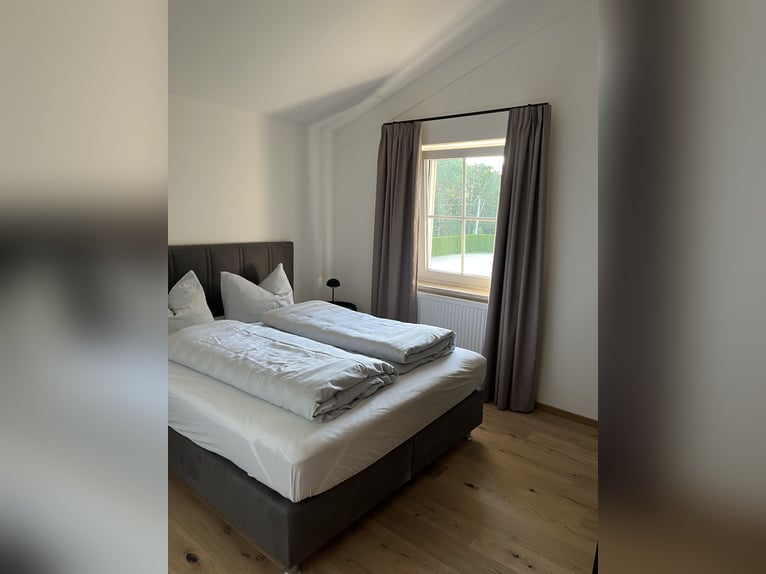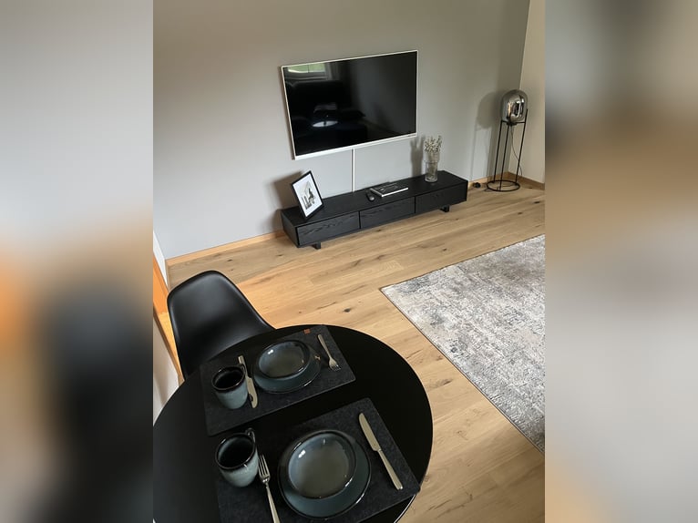 Vacations at "Gut Buchenhof" with a view over Kempten and the Allgäu Alps. The Gut Buchenhof sports horse center is just a five-minute drive above Kempten. The location is unique and unparalleled in the area. As the name suggests, "Gut Buchenhof" is very popular with equestrian sports enthusiasts. But skiers, golfers, cyclists, hikers and guests who simply want to explore the Allgäu region are also in the right place here. The surrounding area offers a varied program for every guest. Füssen and the famous "Neuschwanstein Castle" are only a 38-minute drive away. Oberstaufen can be reached in 34 minutes. Memmingen Airport can be reached in 37 minutes. In addition to numerous sports and nature-loving guests, Gut Buchenhof is particularly popular with horse riders. We offer you the opportunity to spend your vacation together with your horse. We are happy to rent out guest horse boxes by arrangement and arrange individual training sessions/lessons adapted to your level. About the accommodation The vacation apartments have been newly renovated, with particular attention paid to the choice of furnishings. Each apartment boasts high-quality oak parquet flooring and selected designer furniture. They each offer a small kitchen with fridge, a dining area, a bathroom with shower, a bedroom and a living area with pull-out sofa bed and flat-screen TV. Internet access is free of charge throughout the accommodation. In addition, the large sun terrace invites you to linger. Pets are welcome by prior arrangement. Surroundings Gut Buchenhof is located on the edge of the village of Buchenberg with views over the Allgäu Alps and Kempten. The surrounding area is characterized by idyllic pastures, typical Bavarian inns, rustic farms and the beautiful Alps. The Allgäu is a region as diverse as its nature and the attractions and activities it offers. There is something to experience here for every vacation and every season. Skiing, horse riding, mountain sports, water sports, cycling, the Alpsee Coaster and much more are on offer in the regions around Buchenberg." Vacation apartment Alpenblick 115.- Euro per night Box per day 30.- Euro Riding lessons 35.- Euro 30 minutes