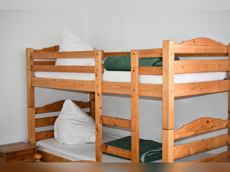 Toda la información en: https://talhof-edertal.de/reiterferien-fur-kinder-und-jugendliche/ Tel. 05621/2682 E-Mail: talhofwellen@web.de En el Talhof ofrecemos emocionantes vacaciones a caballo para niños y jóvenes durante todas las vacaciones escolares. El programa de una semana (de sábado a sábado) incluye alojamiento con pensión completa, seis clases de equitación, así como otras actividades relacionadas con los caballos y -dependiendo de la edad de los niños- una supervisión intensiva por parte de nuestro competente equipo. Llevamos más de 40 años invitando a niños (a partir de 8 años) y jóvenes al Talhof con nuestro emocionante programa de vacaciones. Le esperan momentos emocionantes con mucha diversión y numerosas actividades en torno a una auténtica granja. Nuestra extensa zona en plena naturaleza virgen, con sus numerosos caballos, vacas, cerdos, cabras, gansos, gallinas y una gran variedad de otros habitantes animales, ofrece un entorno perfecto para descubrir, jugar y aprender. Seguro que vivirás muchas experiencias nuevas y harás muchos amigos después de esta semana. La parte más importante de las vacaciones a caballo son las numerosas actividades en el Talhof y sus alrededores. Las clases de equitación diarias (excepto el día de llegada/salida) y el cuidado de los caballos y ponis son el núcleo del programa. Nuestros experimentados instructores de equitación prestan especial atención a enseñarle a manejar el caballo de forma correcta y segura como compañero. Dependiendo del tiempo que haga, nos gustaría practicar con usted en la pista cubierta y en la hermosa pista exterior o disfrutar de la naturaleza en un paseo por senderos. Tampoco se aburrirá después de montar, ya que le tenemos reservado un paseo en carromato cubierto, un emocionante rally por la granja o el pueblo, una barbacoa y una velada alrededor de la hoguera con pan de palo. También puedes pasar tu tiempo libre como quieras en nuestros amplios terrenos con campo de fútbol, mesa de ping-pong, varios parques infantiles y tirolina. Durante sus vacaciones a caballo, normalmente se alojará en habitaciones compartidas con otros niños de su misma edad. Por un pequeño suplemento, también podemos alojarle en habitaciones de 2 ó 3 camas, según disponibilidad. Naturalmente, el programa de vacaciones incluye pensión completa con 3 comidas saludables al día, y algunos días también hay tarta y chocolate caliente por la tarde. La chef Sonja, que es cocinera titulada, se esmera en ofrecer una dieta buena y equilibrada. Por favor, infórmenos de cualquier requisito especial, por ejemplo, alergias, etc. en el campo de comentarios al hacer la reserva. Toda la información en: https://talhof-edertal.de/reiterferien-fur-kinder-und-jugendliche/