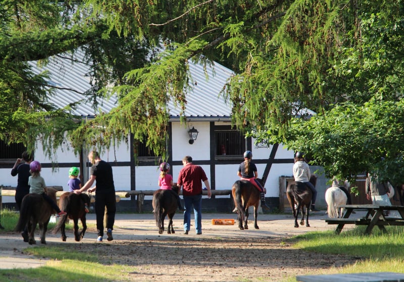 Uns findet ihr in der schönen Lüneburger Heide nahe der Elbe etwa 50km östlich von Lüneburg und weitere 50km von Hamburg entfernt. Die Reitsporteinrichtungen unseres Reiterhofes (große Reithalle, 6 Reitplätze, 2 Springplätze, Geländeparcours, Gastpferdeweiden etc.) sind locker über das große Gelände verteilt. Es stehen über 60 Pferde und Ponys zur Verfügung, die bei uns zumeist von Fohlenalter an mit zur Familie gehören. Eigentlich ist für jeden Geschmack und für jeden Anspruch ein passendes Pferd dabei. Reiterferien im Juniorclub von SAMSTAG bis SAMSTAG in den Ferien 11x Training: Reiten - Bahn & Ausritte Pflegepferd für die tägliche Pflegepferdestunde umfangreiches Freizeitprogramm wie z.B. Lagerfeuer, Kinderdisco, Kürbischnitzen, Steckenpferd-Parcours, ... 7x Übernachtungen im Juniorclub mit Verpflegung(inkl. Getränke) Betreuung im Juniorclub, auf den Zimmern, während des Essens und in der Freizeit Alter: 7 – 15 Jahre.Juniorclub, so heißt unsere Herberge, in der alle Kinder und Jugendlichen wohnen, die ohne Begleitung der Eltern bei uns Reiterferien machen. Die Mehrbettzimmer sind sehr rustikal und einfach eingerichtet und liebevoll von einem Künstler gestaltet worden. Alle Kinder, die während ihrer Reiterferien im Juniorclub übernachten, nehmen die Mahlzeiten gemeinsam ein und auch die Pflegepferde- und ponys putzen und pflegen alle jungen Reiter zusammen. In den Reitgruppen werden die Kinder nach Ihrer Erfahrung in verschiedene Gruppen aufgeteilt. Der Tag beginnt mit dem Frühstück, auf das die erste Reitstunde folgt. Als nächstes ist dann schon das Mittagsessen an der Reihe gefolgt von der Pflegepferdestunde. Anschließend ist es auch schon Zeit für die nächste Reitstunde bzw. den nächsten Ausritt, bevor es dann nach dem Abendessen und einem abwechslungsreichen Freizeitprogramm dann wieder heißt: Ausruhen für den nächsten Tag! Nach dem Abendessen lassen wir jeden Abend mit einem anderen Freizeitprogramm ausklingen. Dieses und andere Reitpakete findet ihr auf unserer Internetseite: www.reiterhof-lueneburger-heide.de
