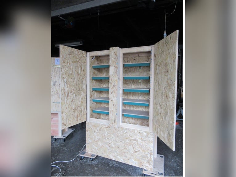 Biete Pferdefütterungsautomat (PFA), auf Ihre Bedürfnisse angepasst - PFA, geeignet für Raufutter, Heu, auch gepresst - Aus robusten Konstruktions-Holzplatten gebaut - Verschraubt und verklebt, 5 Tablare - auch mehr oder weniger Tablare möglich, 4 kg pro Tablar - Futterbefüllung von vorne, viele Varianten - Futterentnahme von vorne, oder seitlich, auch hinten (bei Bestellung angeben) - Elektrischer Anschluss 230V , 6 A, Zeitsteuerung, 5 einfache Timer - Tablare geräuschgedämpft - Geprüft, Transport nach Absprache - Masse: Breite: 1.48 m; Tiefe: 0.584 m; Höhe: 1.92 m - auch andere Masse möglich - Aufstellung der Geräte «unter Dach», trocken - PFA muss an Rückwand verschraubt werden (Stabilität) - Fronttüre verriegelbar. Können z.B. mit Klein-Karabiner gesichert werden - Lieferung (normalerweise) durch Abholung ansonsten nach Absprache