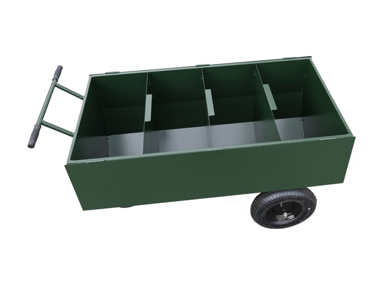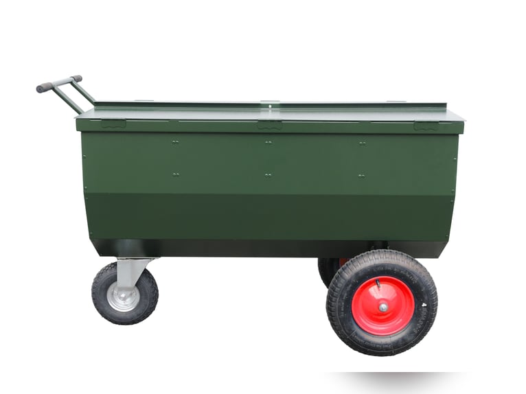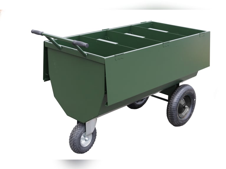 Łatwy w manewrowaniu wózek paszowy z zamykaną pokrywą. Dzięki dużym pneumatycznym oponom i skrętnym kółkom nasz wózek paszowy jest bardzo łatwy do przepchnięcia przez korytarze stajni. Opis: - 3 przegrody do przechowywania do 4 rodzajów paszy - nowe, większe koła - dla łatwego użytkowania - 2-częściowa pokrywa może być zamykana na zamek - Standardowy kolor: szary
