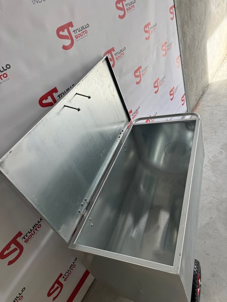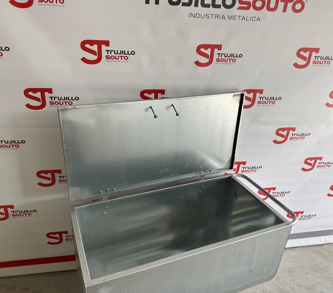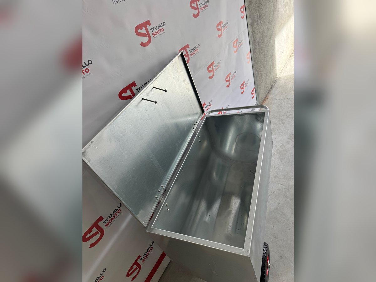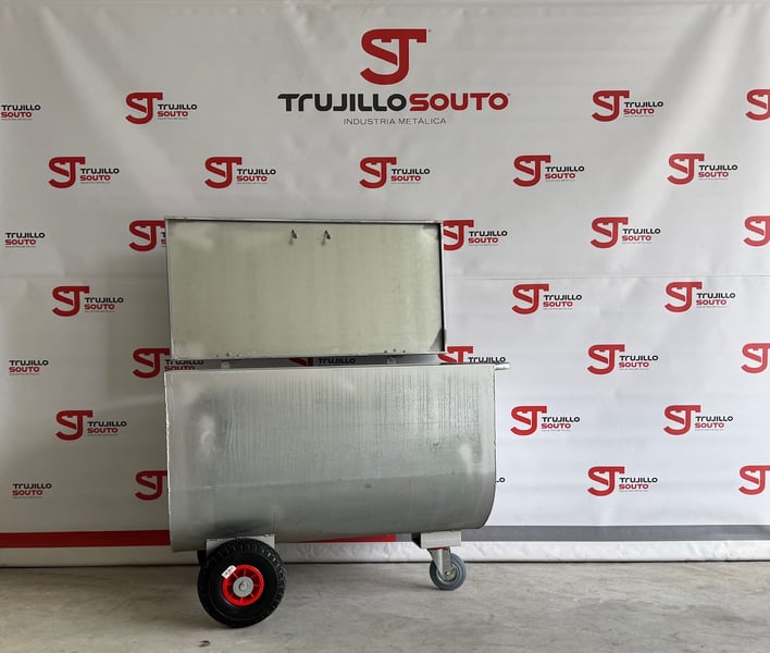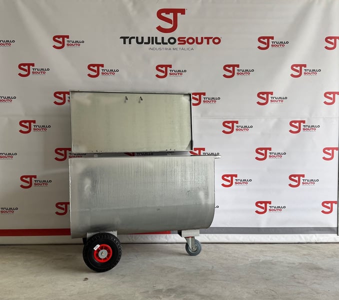 Ergonomischer Futterwagen mit Deckel, geeignet für feste und flüssige Futtermittel, mit der Möglichkeit, einen Deckel sowie verschiedene Zubehörteile anzubringen, um eine Vielzahl von Bedürfnissen abzudecken. Dieses Produkt ist ideal, um Getreideportionen bei Rindern, Schweinen, Schafen und Pferden zu füttern. Wir bieten ihn in verzinkter Ausführung an, mit Edelstahl-Scharnieren und -Griff für den Deckel.
