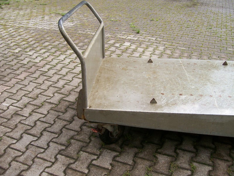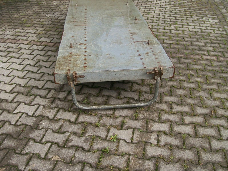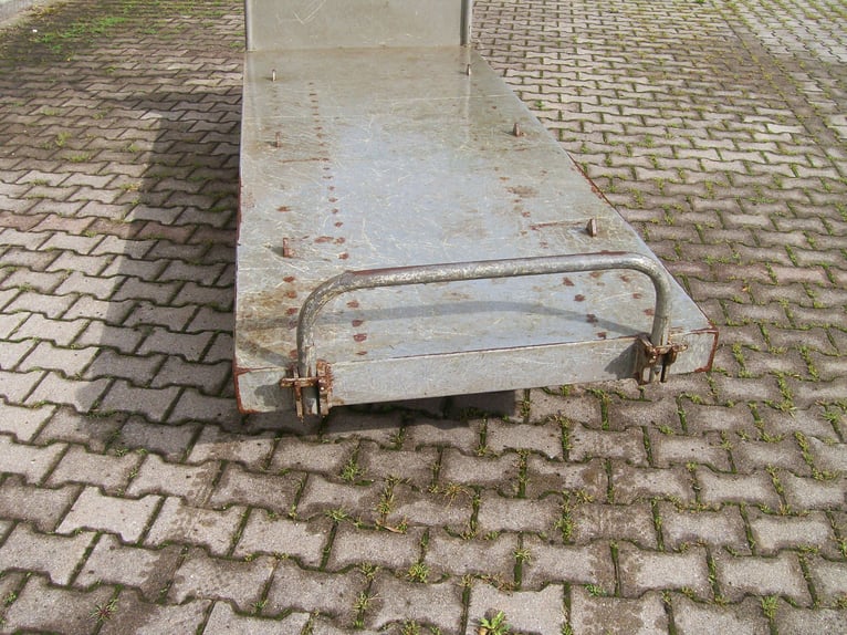 Großballenwagen gebraucht, der Firma Sommer für Quaderballen ( HD Ballen ) Eine starre- und zwei Lenkachsen mit Bremse, Haltegriff über die gesamte Breite, klappbarer Bügel, stabile Ausführung mit geschlossener Auflagefläche und 6 Haltespitzen auf der Fläche für sicheres ablegen von Quaderballen. Leichtes ausfahren der Transport- / Ballengabel, kein verrutschen des HD - Ballen auf dem Wagen. Bis zu zwei HD Ballen für Beladung und Transport möglich. Abmessung Länge 2600 X Breite 1000