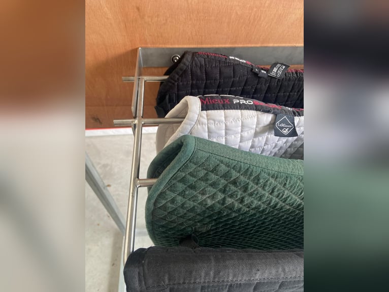 Wieszak na derki idealny do zawieszania derek (również ochraniaczy lub bandaży) w dwóch pozycjach, pozwala na ich oddzielenie, co ułatwia suszenie potu lub po ich wypraniu, lub złożenie, co sprawia, że zajmuje minimalną przestrzeń. Jako produkt ze stali nierdzewnej, pot, woda, piasek... nie powodują korozji. Wykonany w 100% ze stali nierdzewnej jakości AISI 304, spawany metodą TIG z użyciem pręta ze stali nierdzewnej jakości AISI 316.