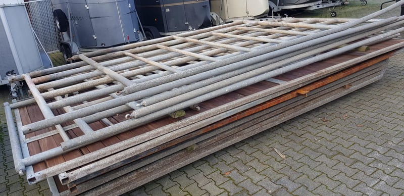 mobile Wände (für Stallzelt) Stück je 350 Euro Laufställe zusammen 1800 Euro Trennwände mit Bongossiholzfüllung und Luftschlitzen 3,50 m x 2 m Stück je 699 Euro Außentüren Stück je 500 Euro 2 m x 1,30 m mit Rahmen
