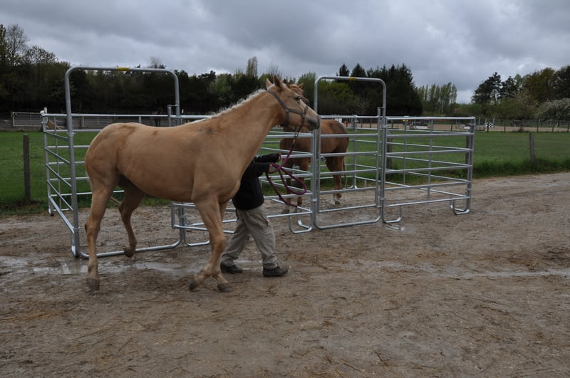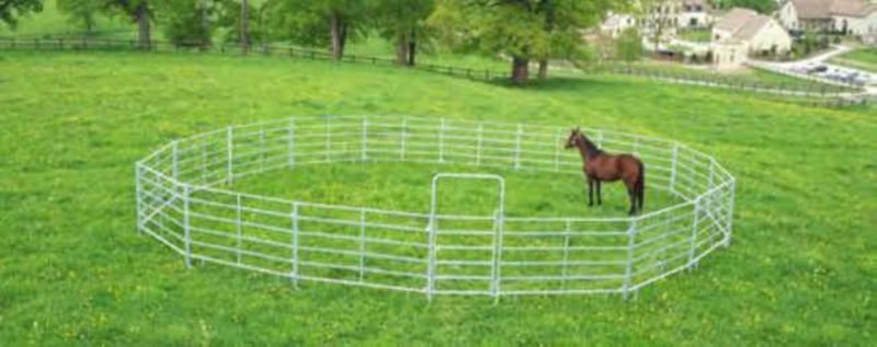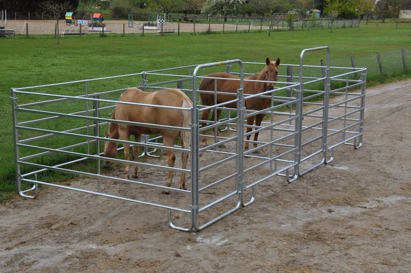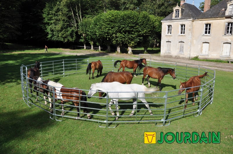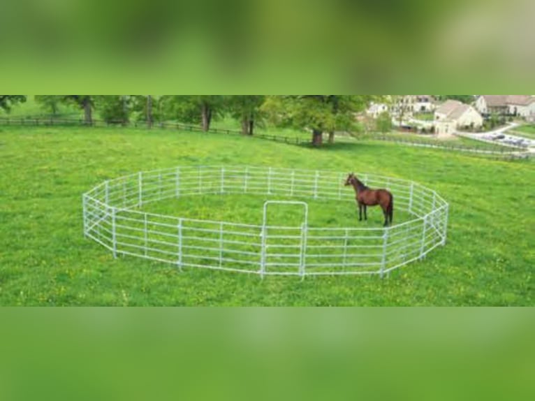 Panel 3,00 m Panels von Jourdain werden vielseitig in der Pferde- und Rinderhaltung eingesetzt. Die Fertigung aus stabilem, feuerverzinktem Flachovalrohr sorgt für die nötige Festigkeit der Panels bei zugleich geringem Gewicht. Mit dem bewährten Kettenverschluss lassen sich mehrere Panels sehr schnell und einfach für die unterschiedlichsten Einsatzgebiete verbinden. So werden unsere Panels sehr gerne für Roundpens, mobile Boxen oder als stabile Einzäunung im Pferdebereich verwendet. Richtig auf die Probe gestellt werden die Panels in der Rinderzucht bei der Verwendung in Corralanlagen als Wartebereich der Tiere oder als Treibgang. Unsere Panelsgibt es in verschiedenen Längen (2,40 m / 3,00 m / 3,60 m), mit oder ohne Türe, bei einer Zaunhöhe von 1,60 m (oberste Sprosse). Die unterschiedlich langen Panels lassen sich beliebig miteinander kombinieren. Eigenschaften: stabiles Flachoval breite Kufen sorgen für sicheren Stand, auch bei weichen Böden Kettenverschluss für schnelles und einfaches Verbinden der Panels feuerverzinkt Technische Daten: Länge: 3,00 m Gesamtbauhöhe: 1,72 m Höhe oberste Sprosse: 1,60 m 6-sprossig Sprossenabstand ca. 21 cm Material: Flachoval 30 x 50 x 1,5 mm feuerverzinkt Zusätzliche Produktinformationen Länge und Kilogramm